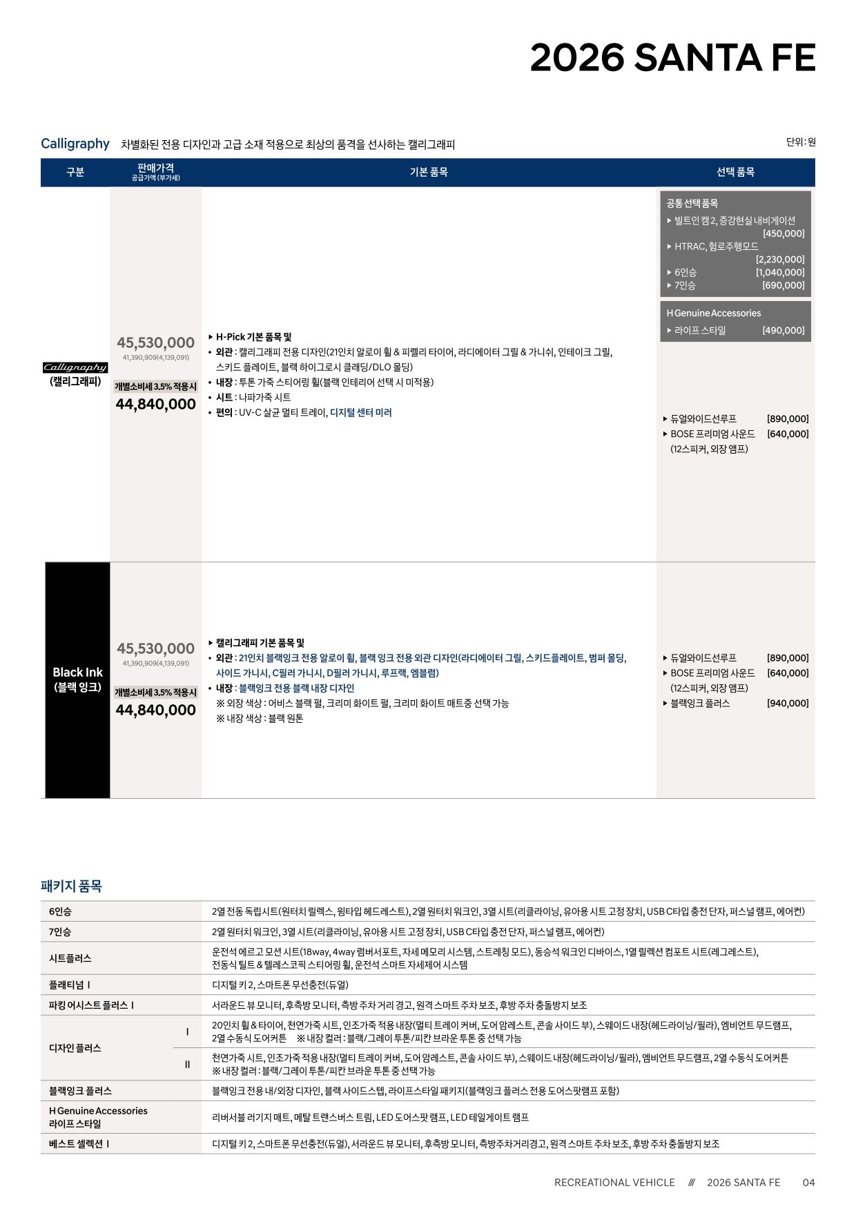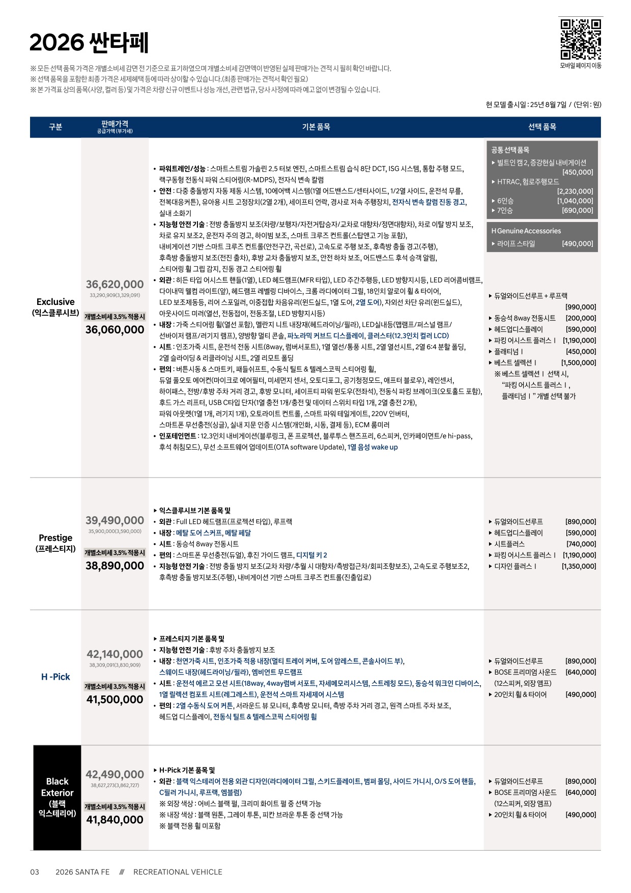 2025년 8월 싼타페 신차가격표 (2026년형 싼타페 출시)