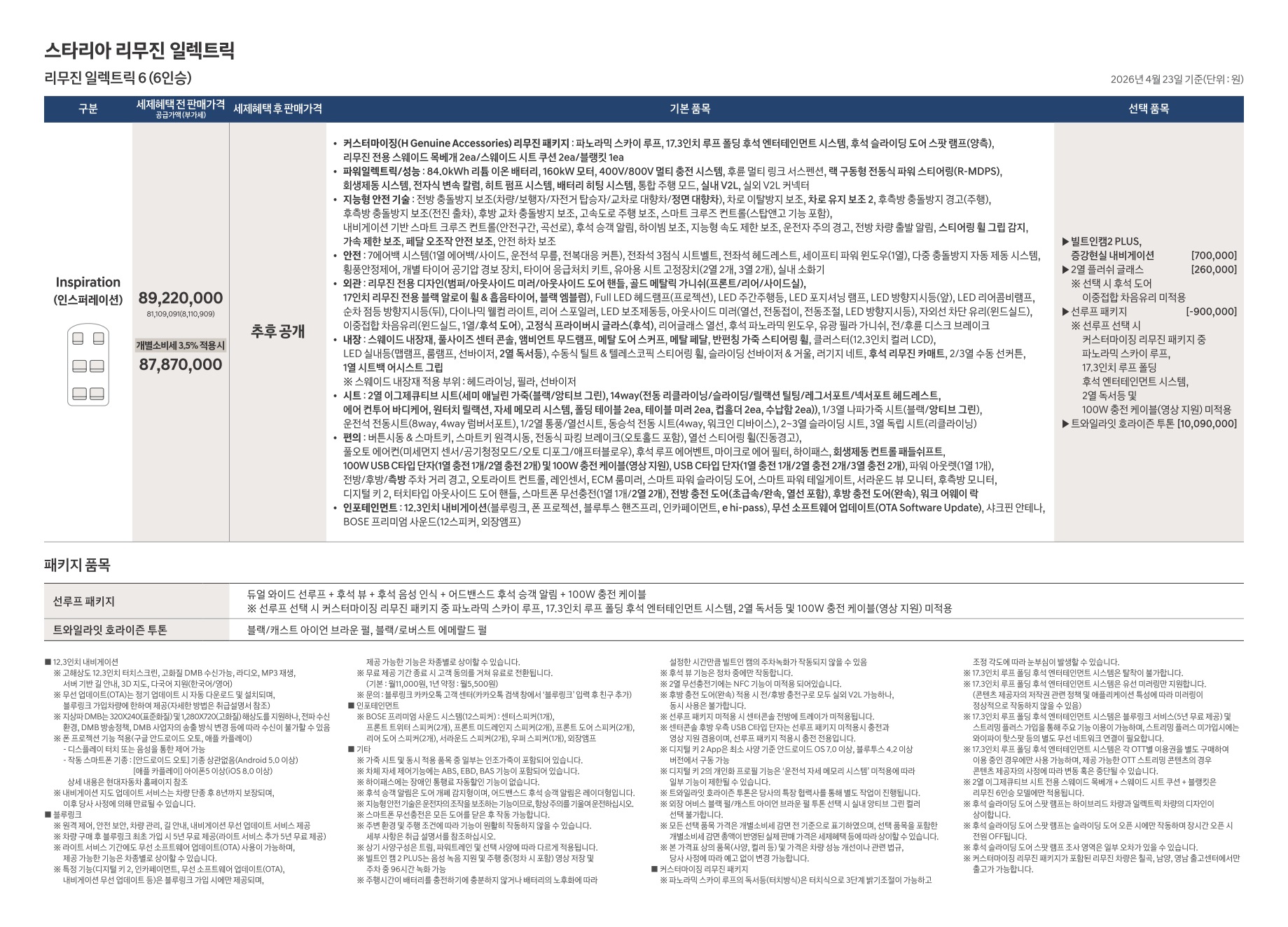 2026년 4월 스타리아 리무진 일렉트릭 신차가격표 (스타리아 리무진 출시)