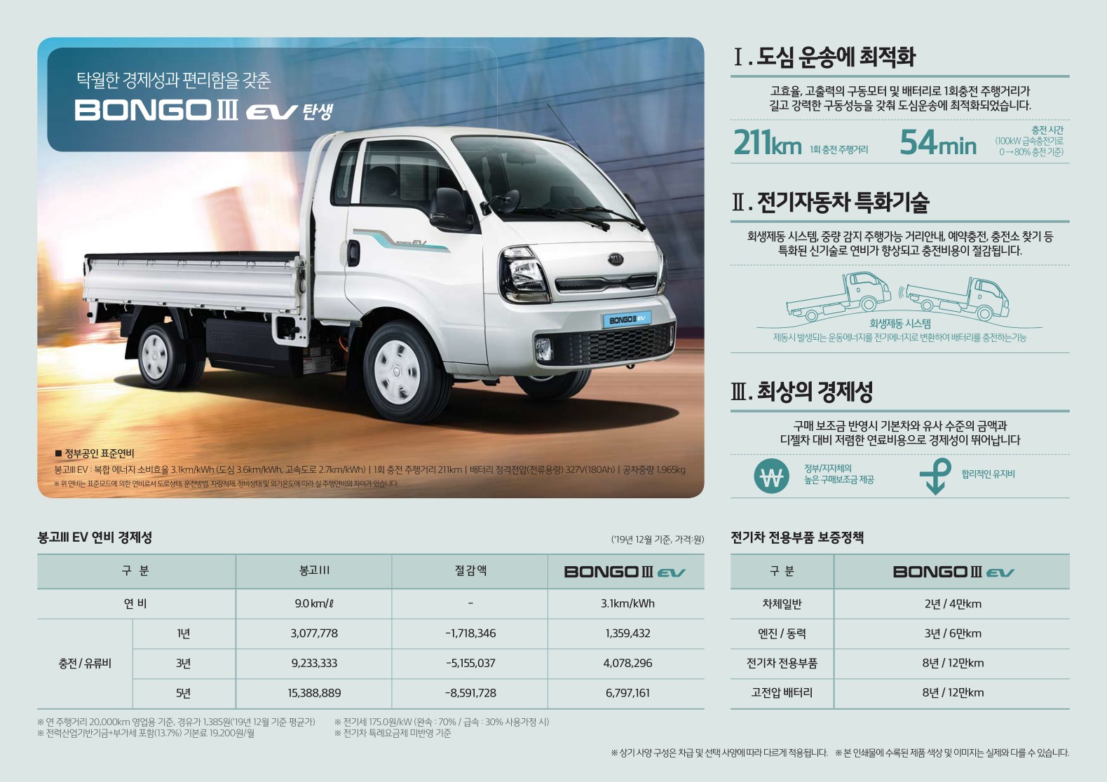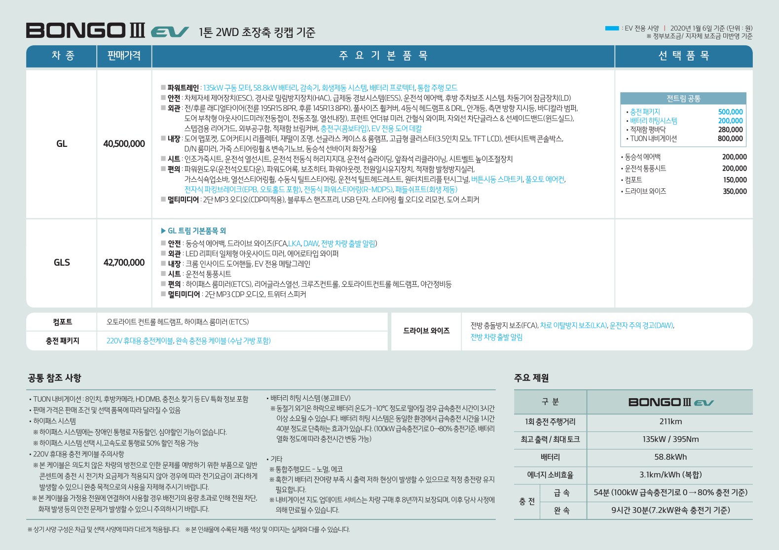2020년 1월 봉고3ev 신차가격표 (봉고3 전기차 신차가격표)