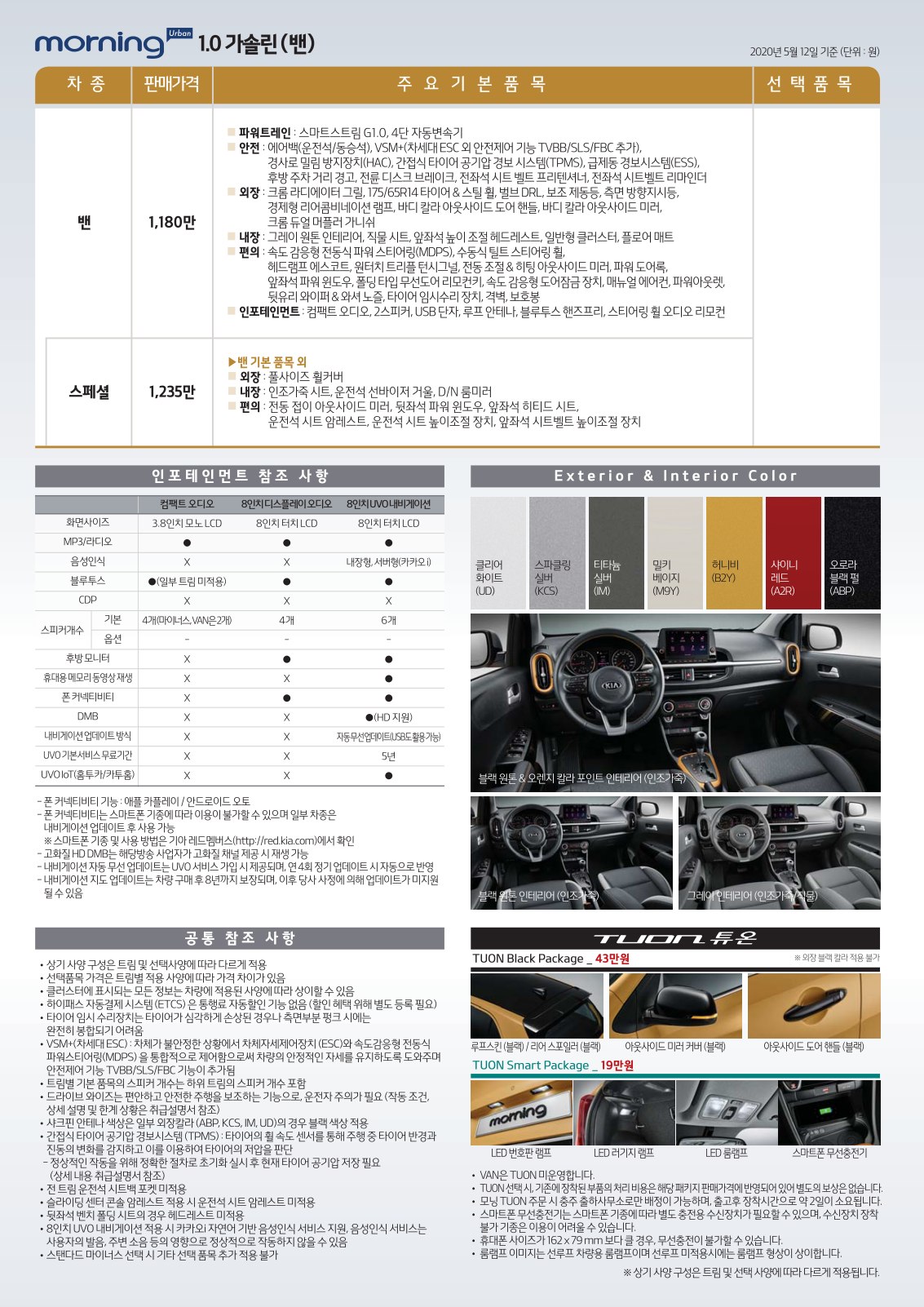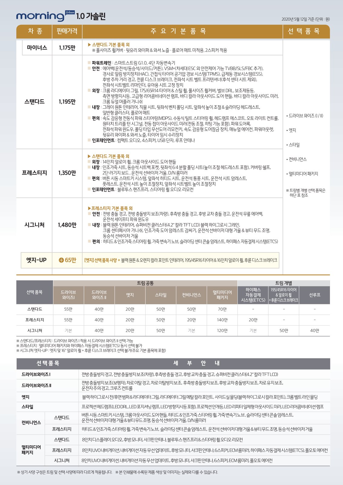 2020년 5월 모닝 신차가격표 (모닝 어반 출시)
