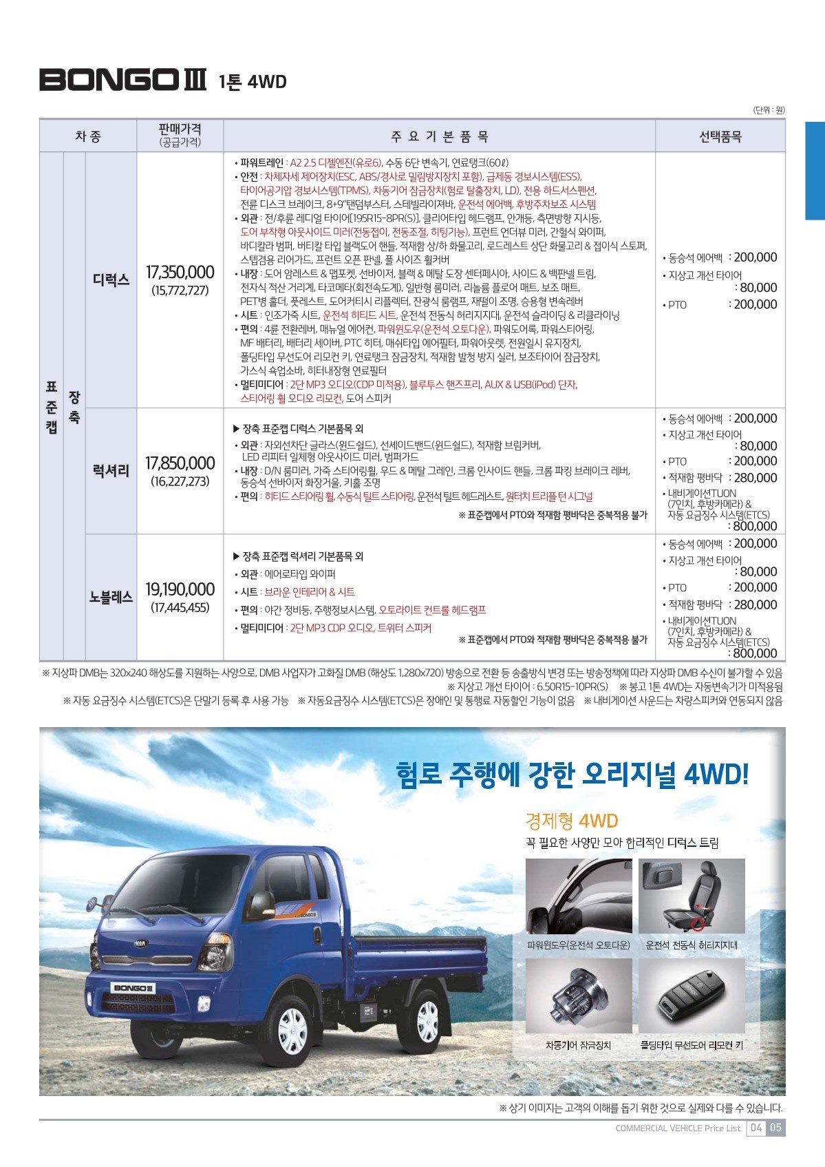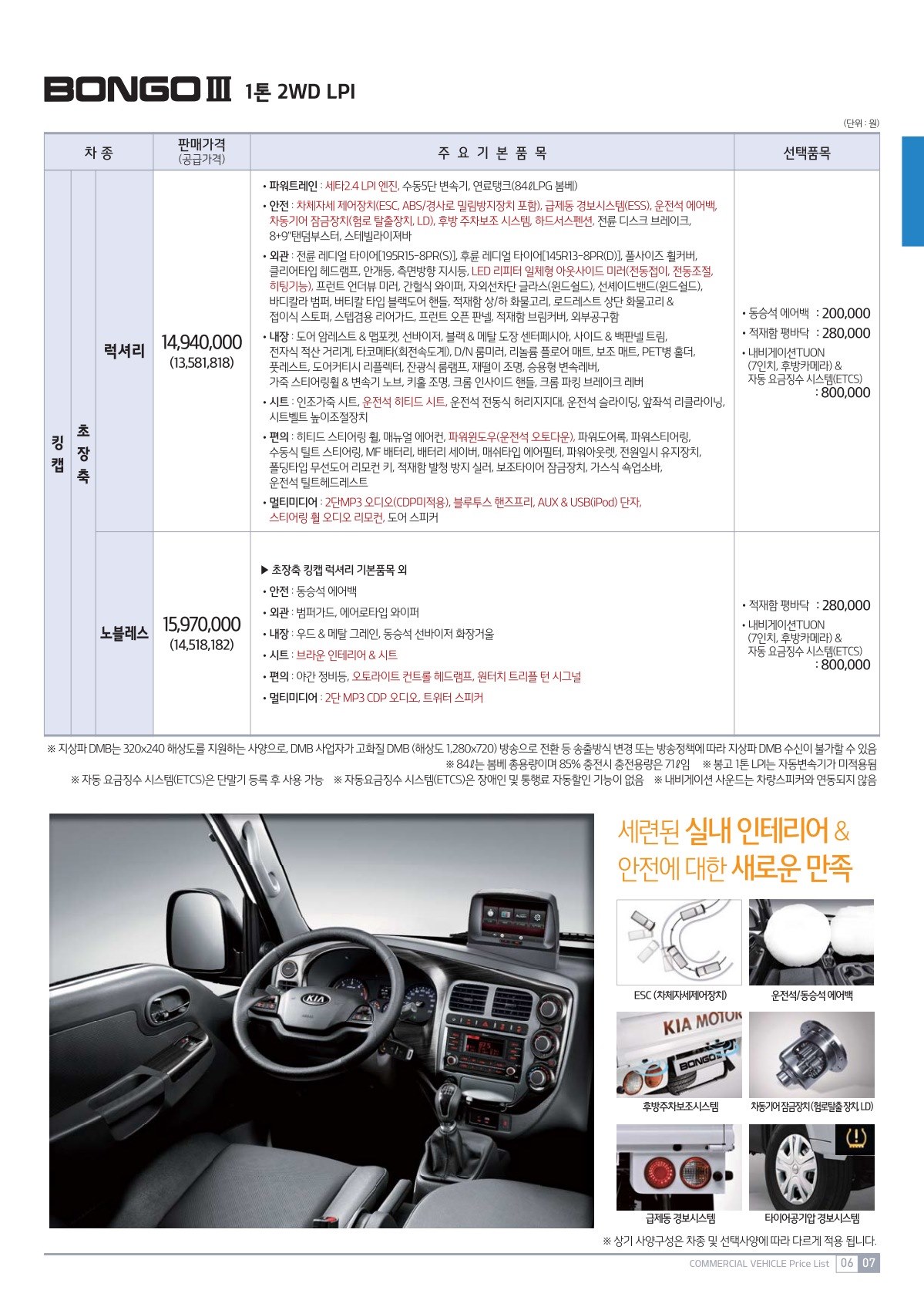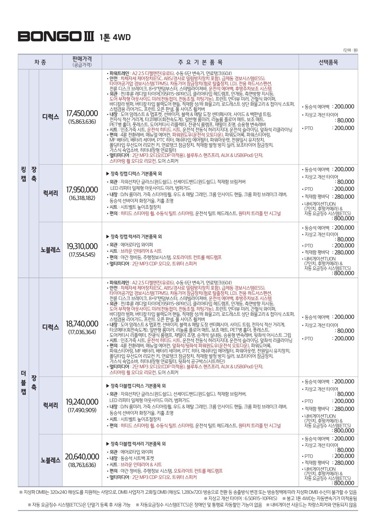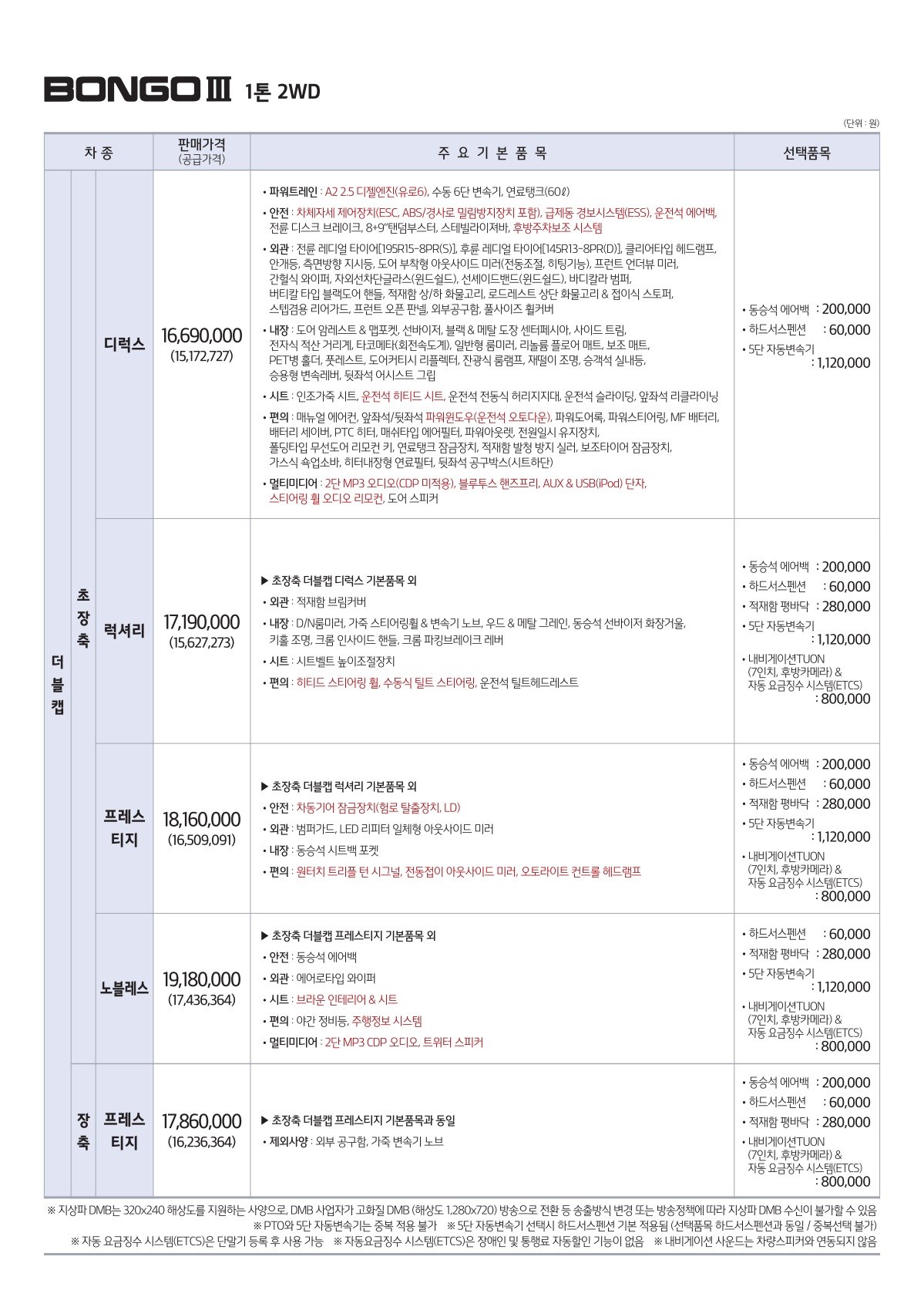 2018년 10월 봉고3 신차가격표 (2019년형)