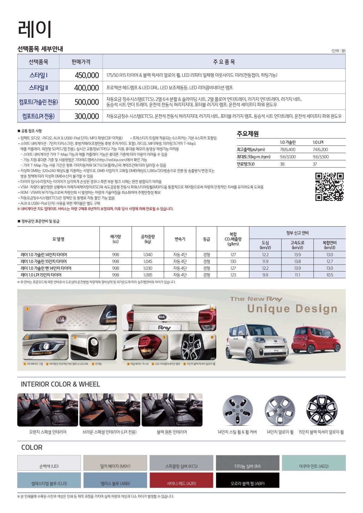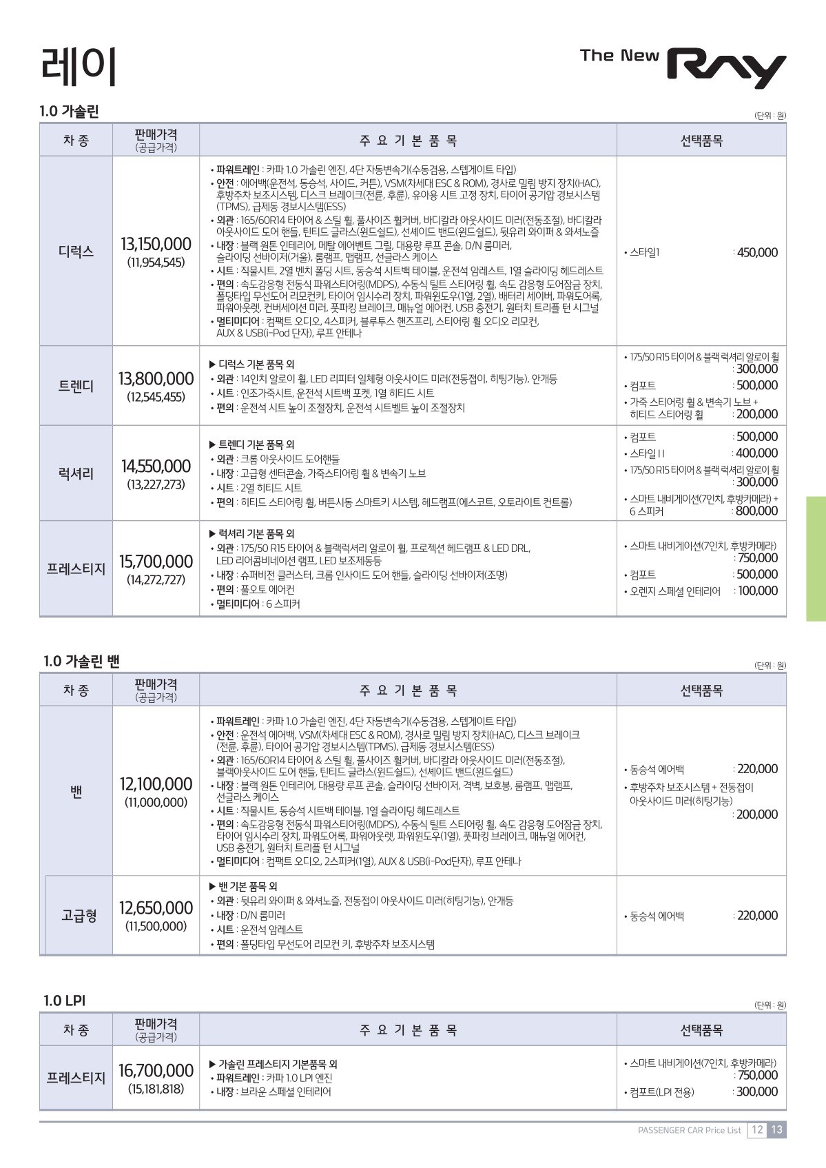 2018년 11월 더 뉴 레이 신차가격표