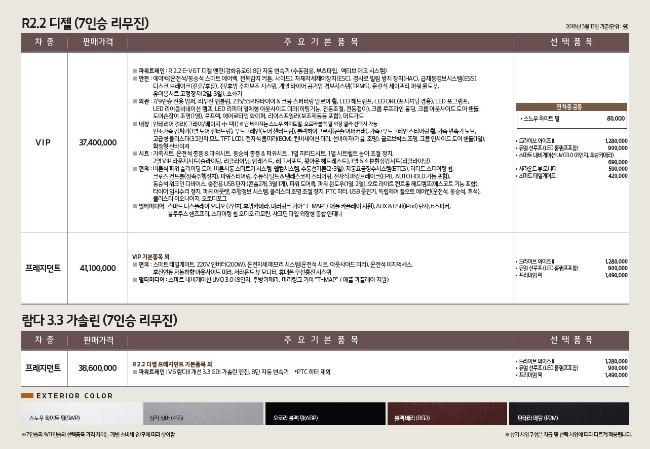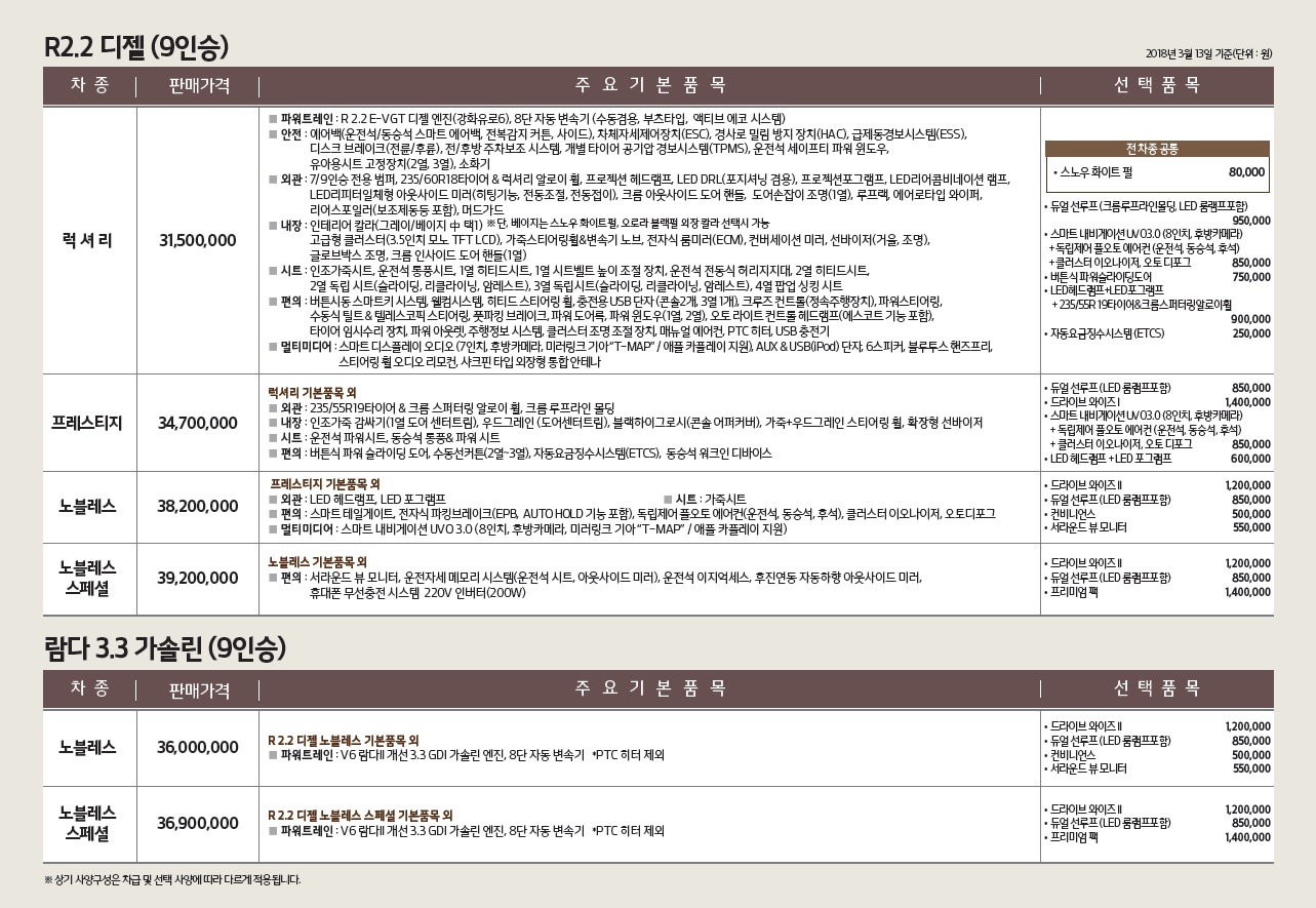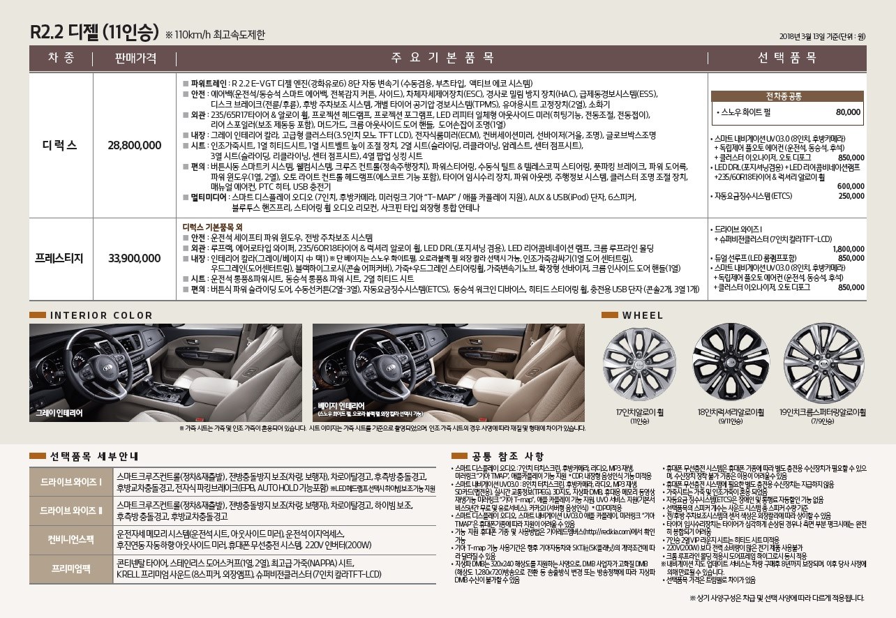 2018년 3월 올뉴카니발 신차가격표 (더뉴카니발 출시)