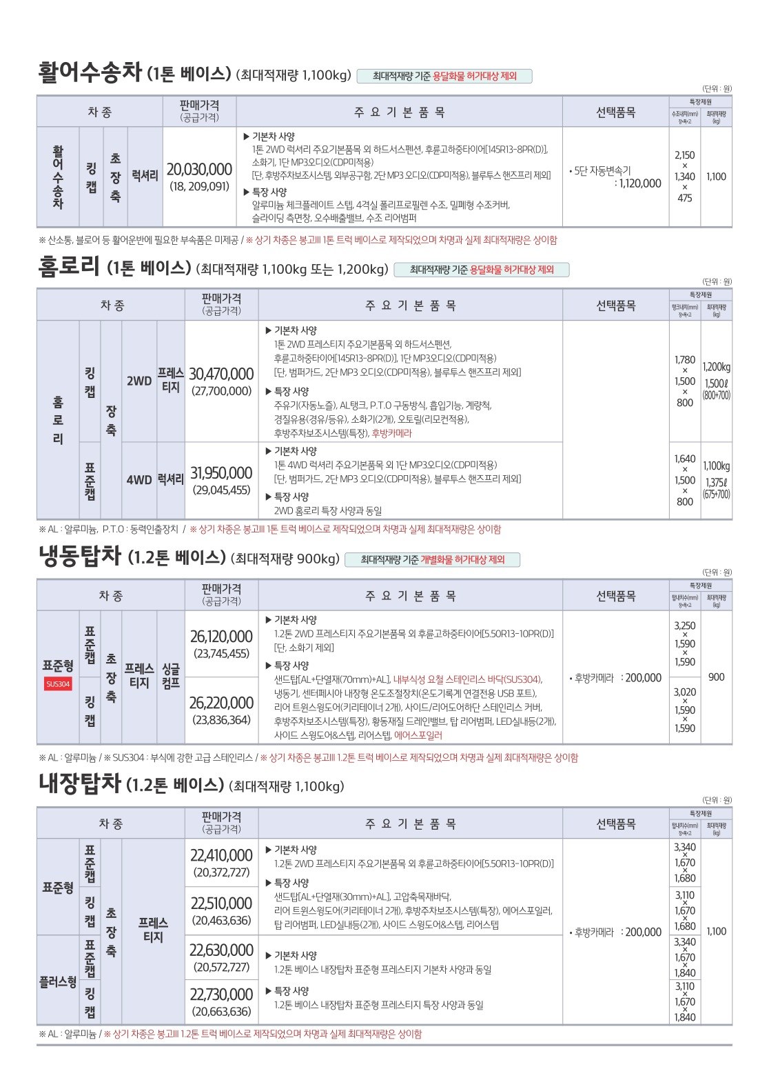 ※ 본 가격표의 모든 저작권은 해당 차량 제조사에 있습니다.
