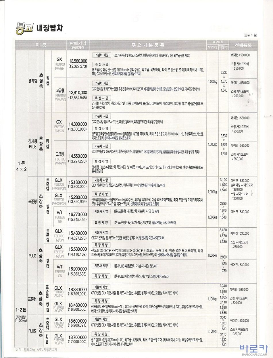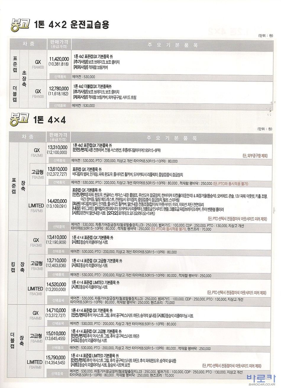 ※ 본 가격표의 모든 저작권은 해당 차량 제조사에 있습니다.