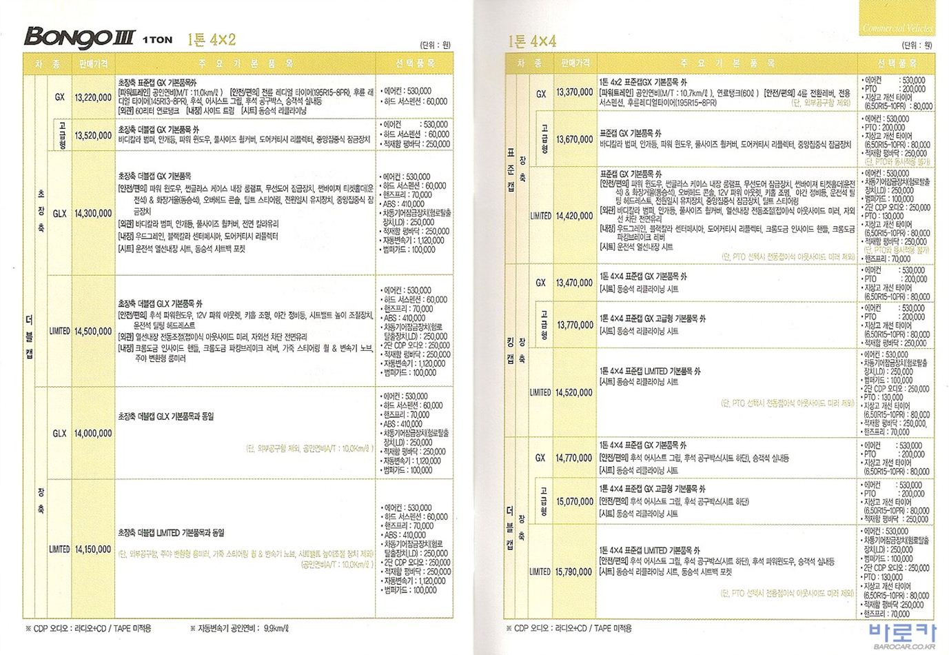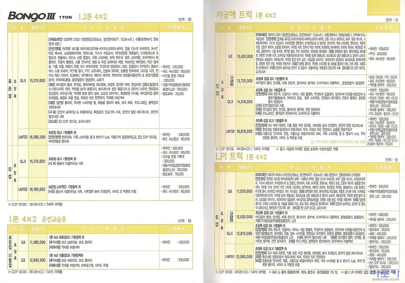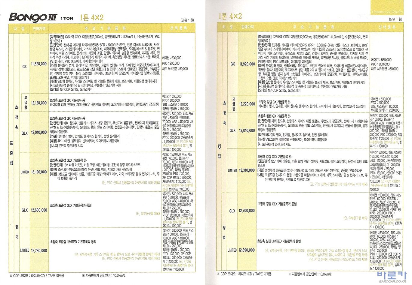 2010년 2월 봉고3 신차가격표