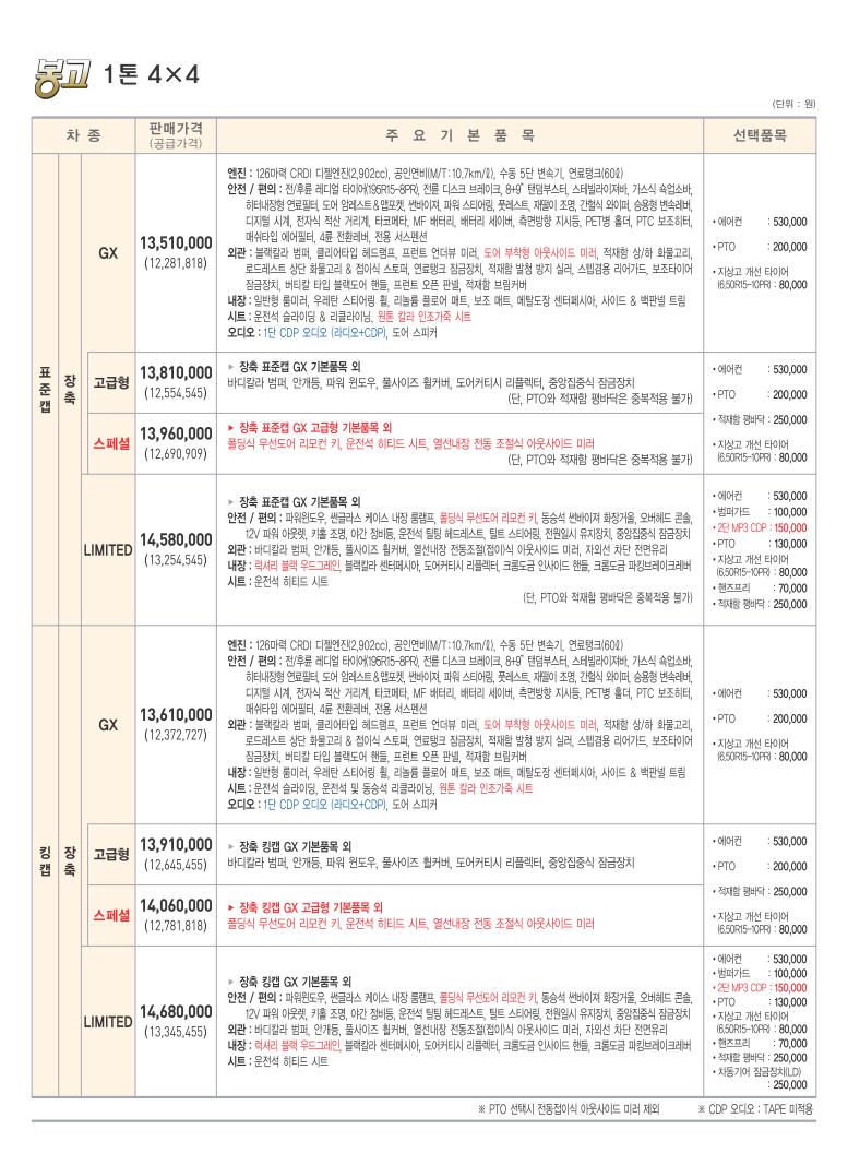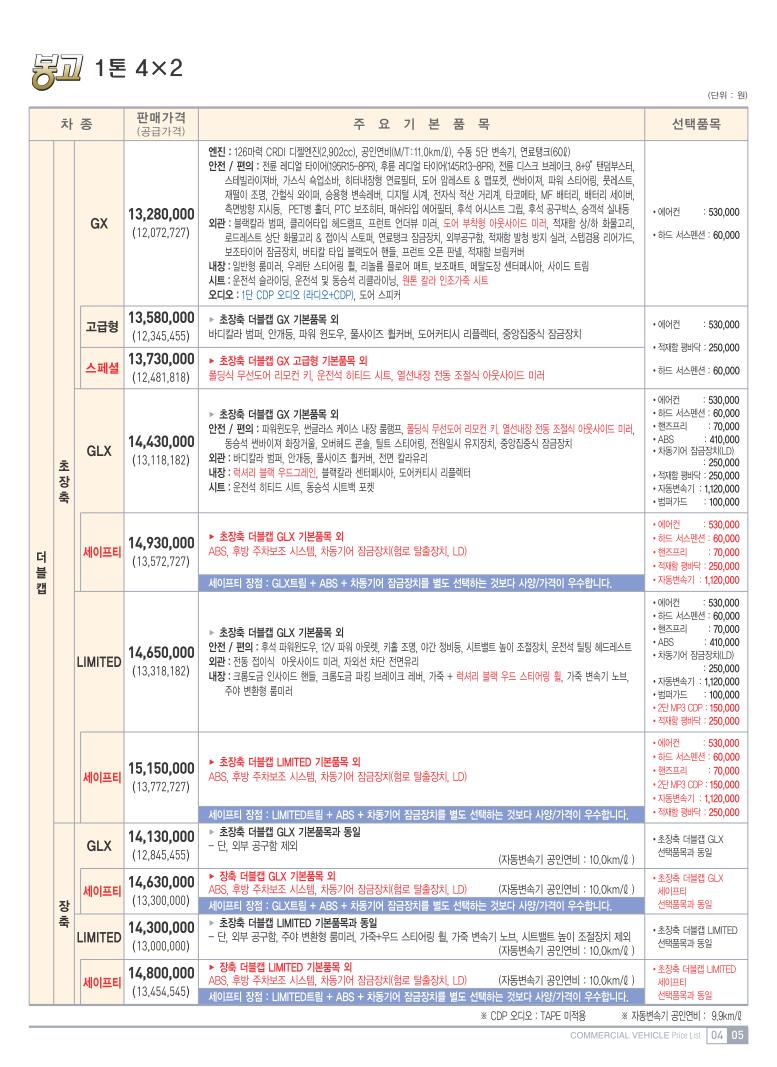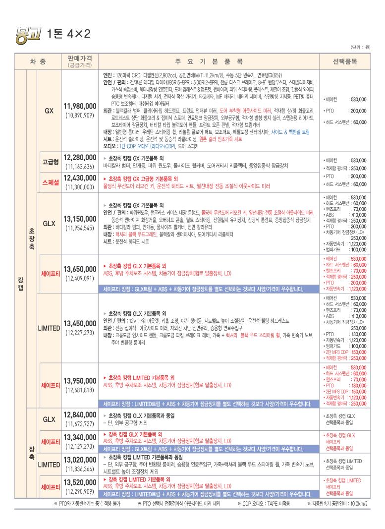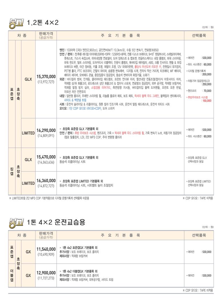 ※ 본 가격표의 모든 저작권은 해당 차량 제조사에 있습니다.