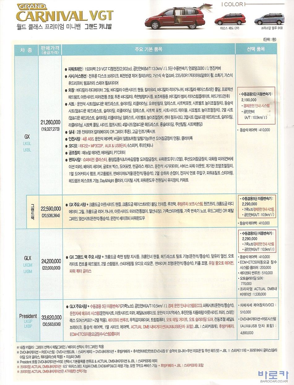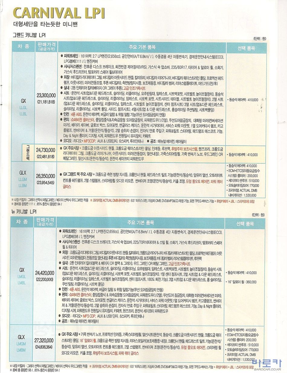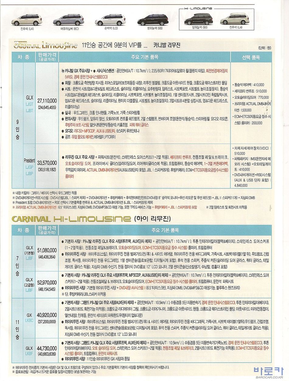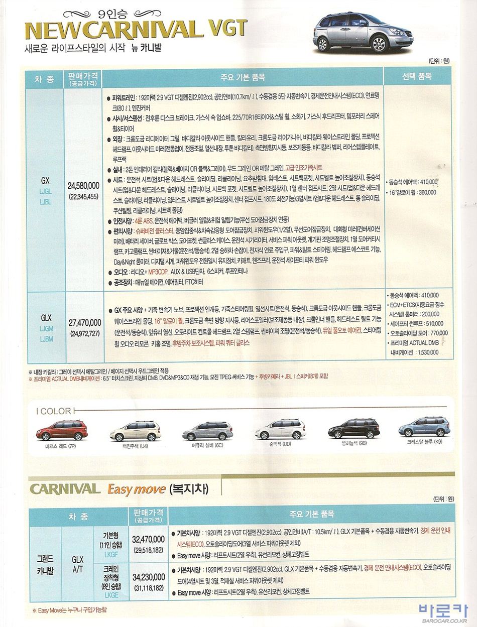 2010년 2월 그랜드카니발R / 뉴카니발R 신차가격표