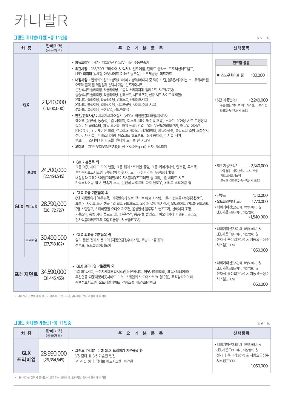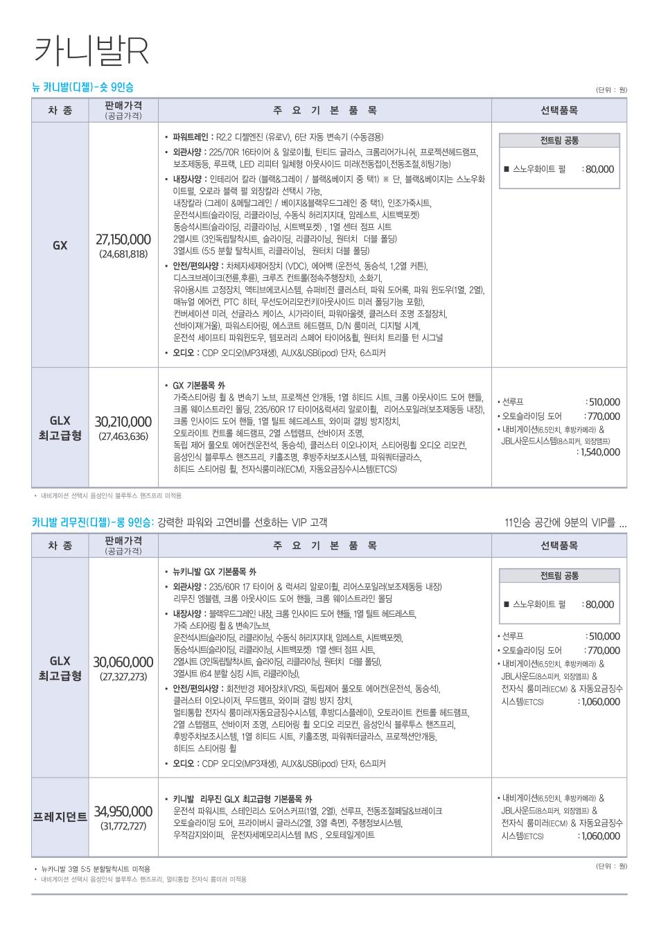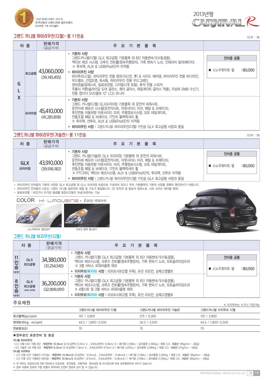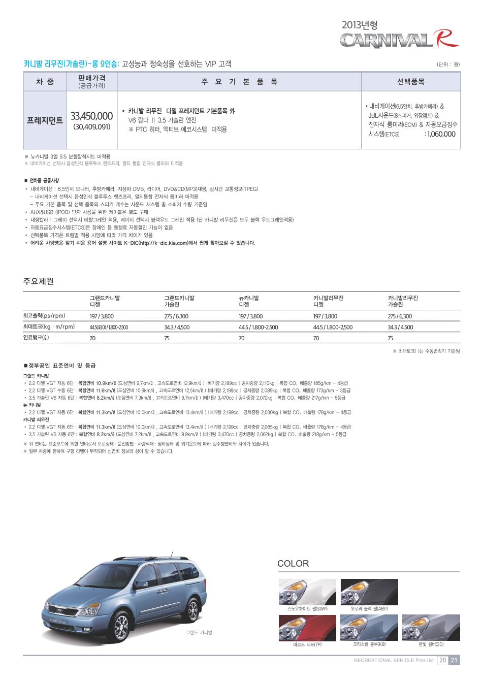 2013년 3월 그랜드카니발R / 뉴카니발R 신차가격표