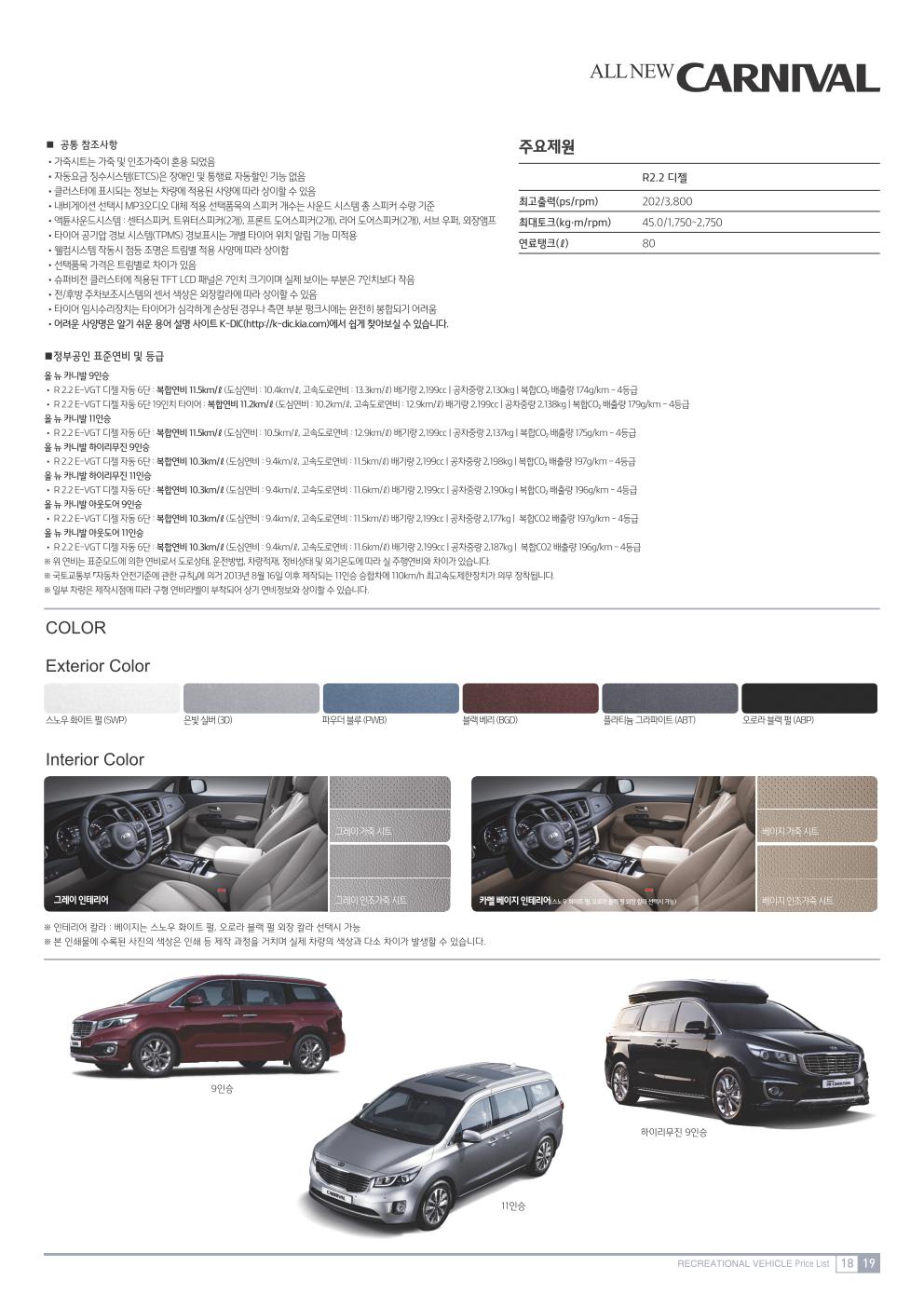 2014년 8월 올뉴카니발 (YP) 신차가격표
