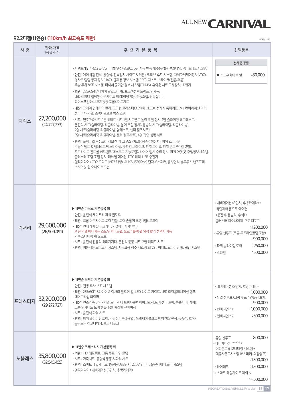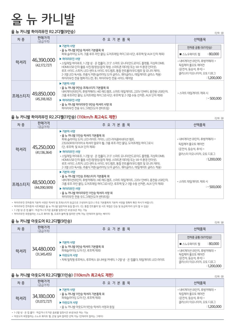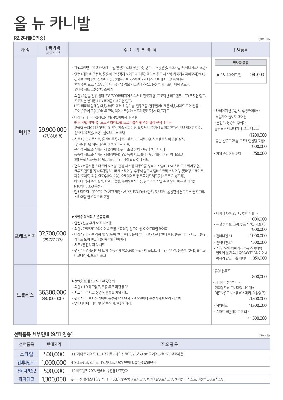 2013년 3월 그랜드카니발R / 뉴카니발R 신차가격표