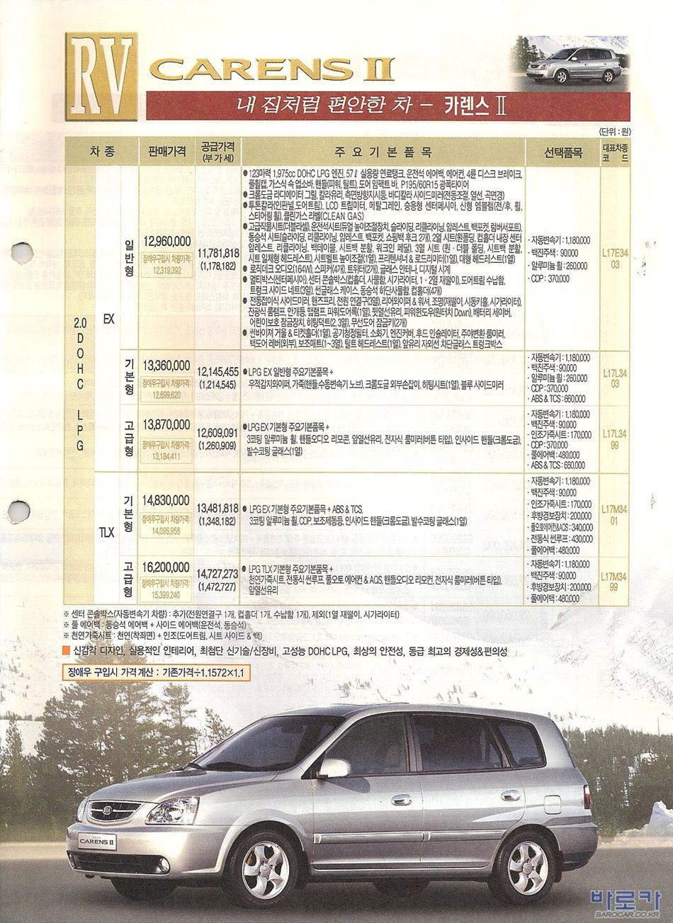 2005년 11월 카렌스2 신차가격표