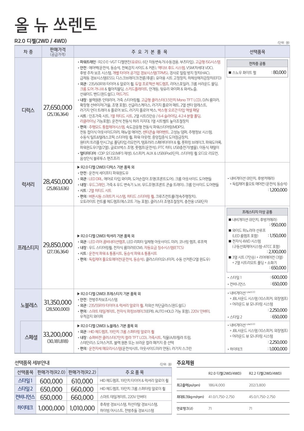 2015년 4월 올뉴쏘렌토 신차가격표