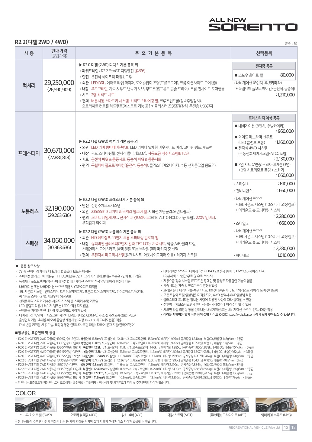 2013년 6월 뉴쏘렌토R 신차가격표