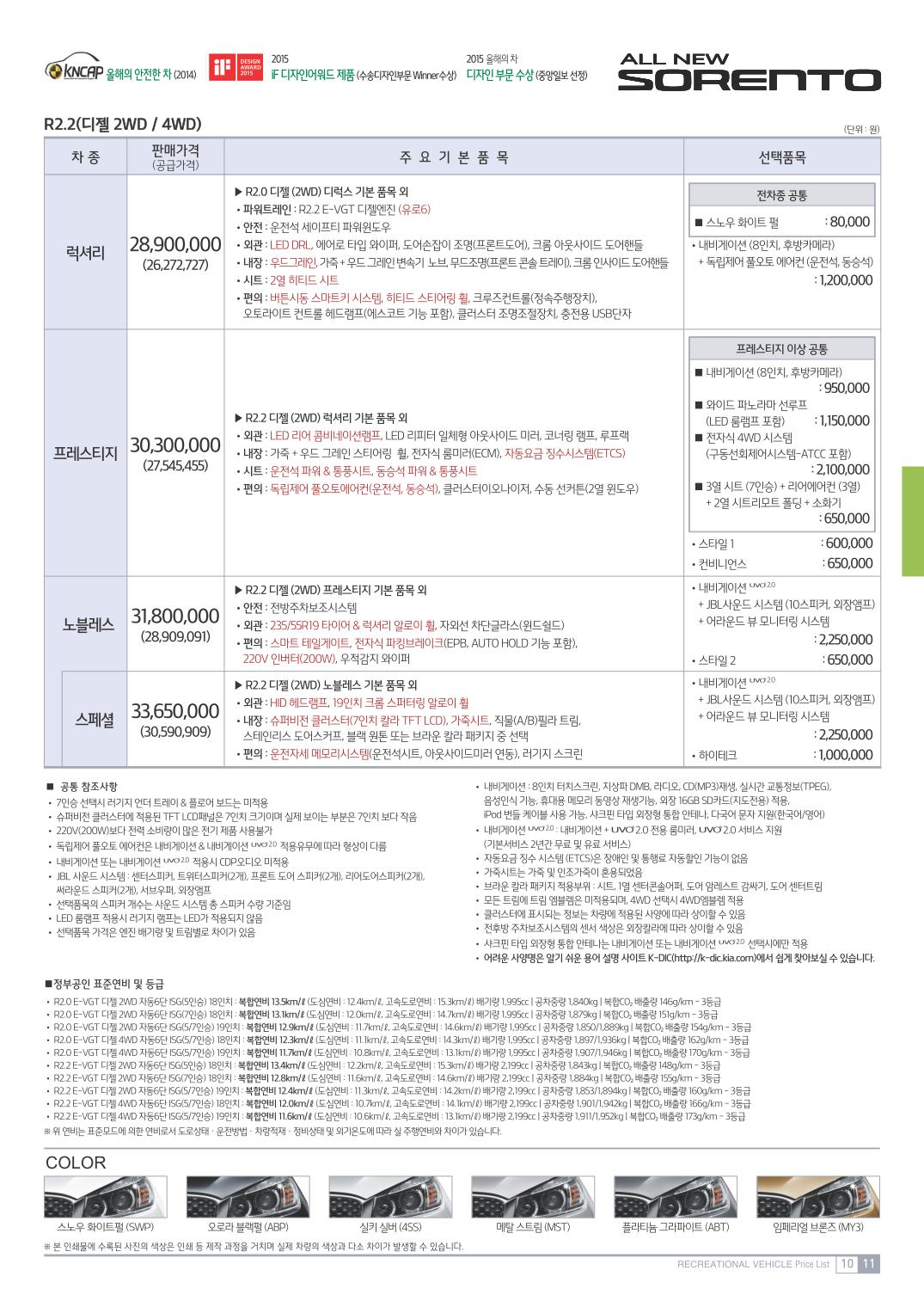 2015년 4월 올뉴쏘렌토 신차가격표