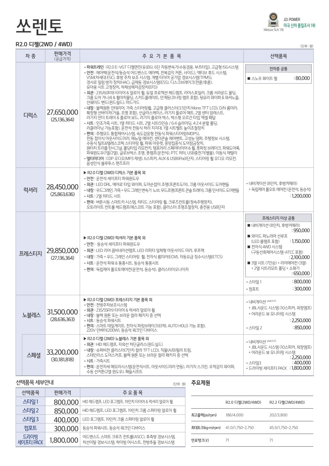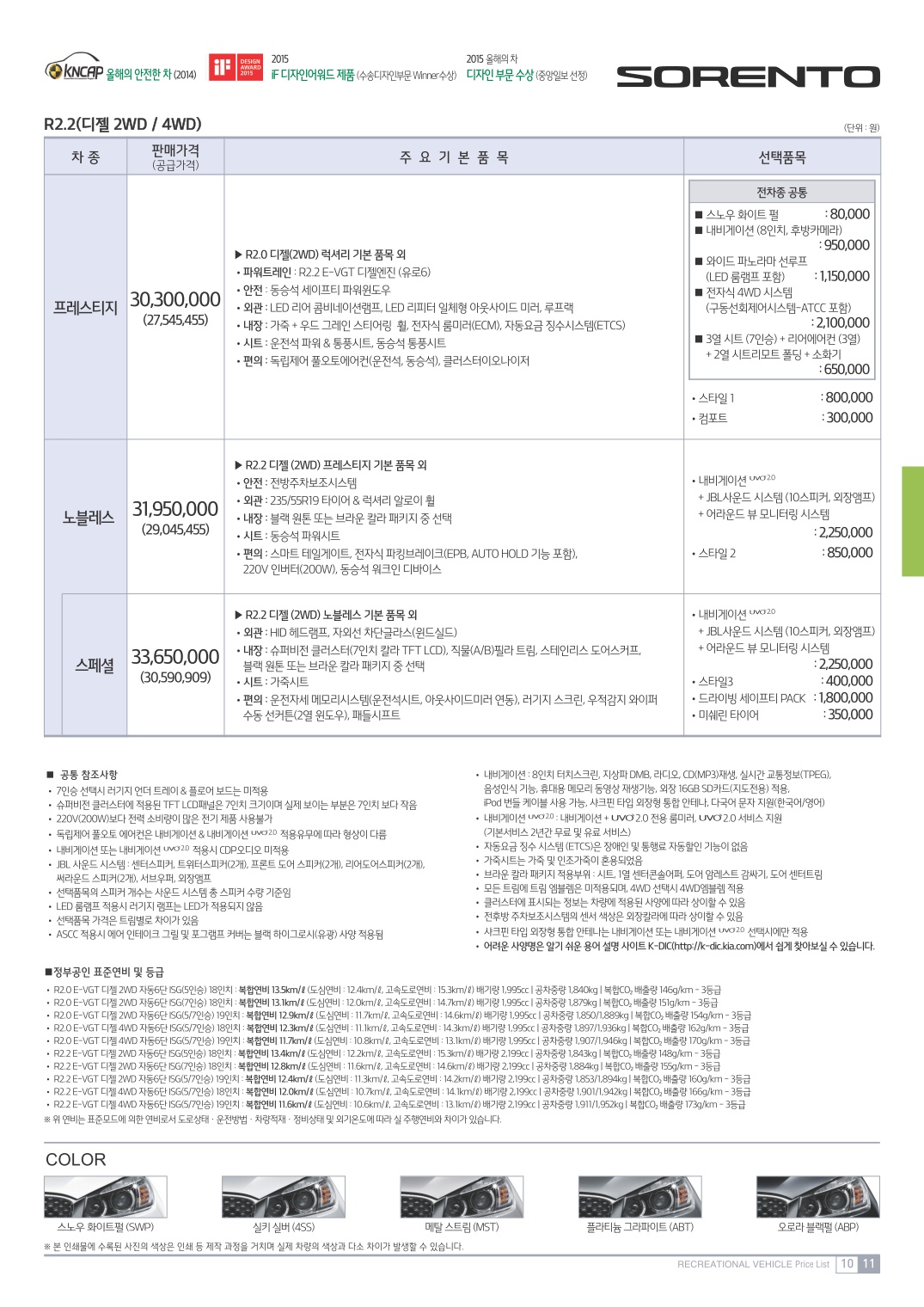 2015년 4월 올뉴쏘렌토 신차가격표