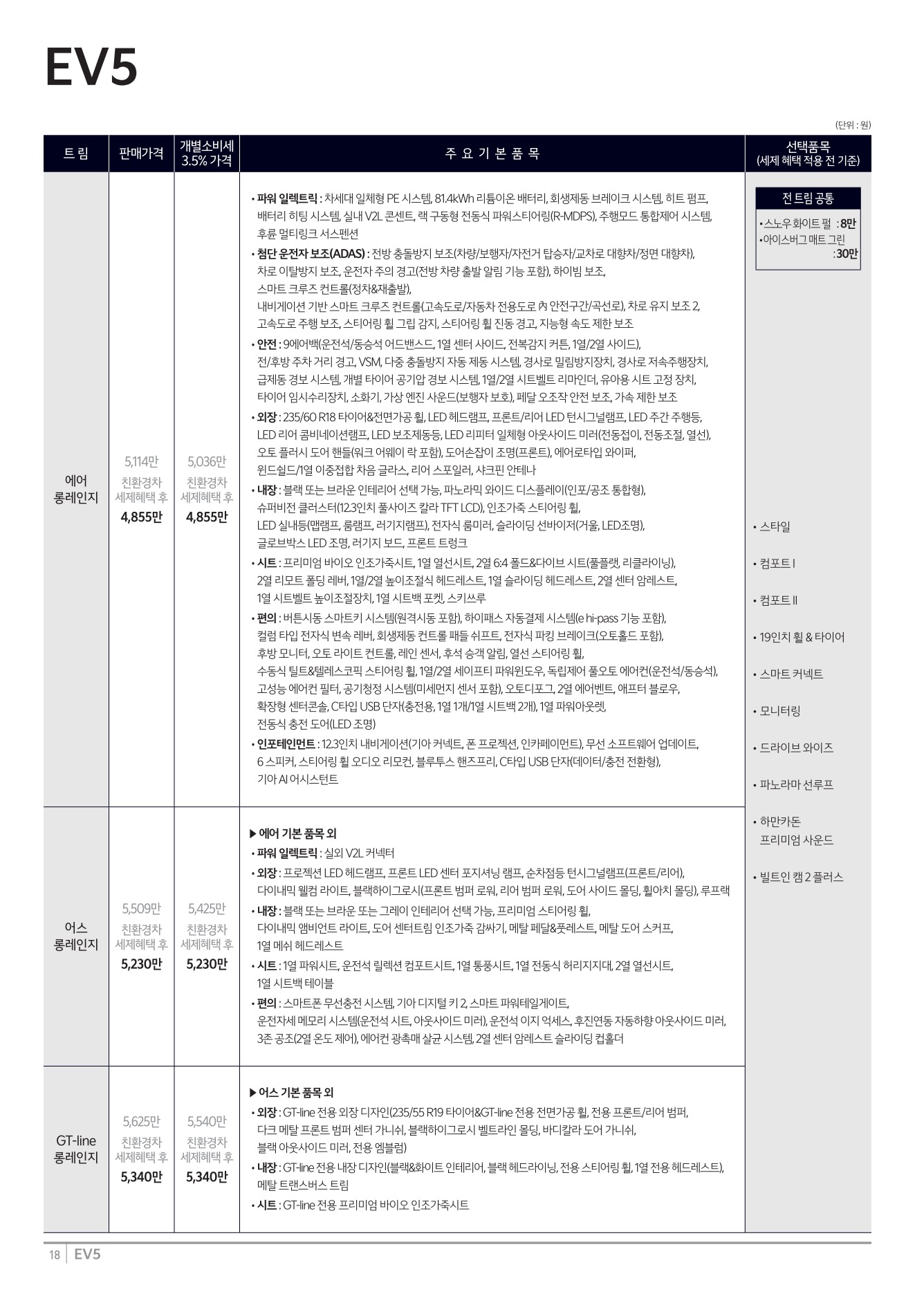 2025년 12월 EV5 신차가격표