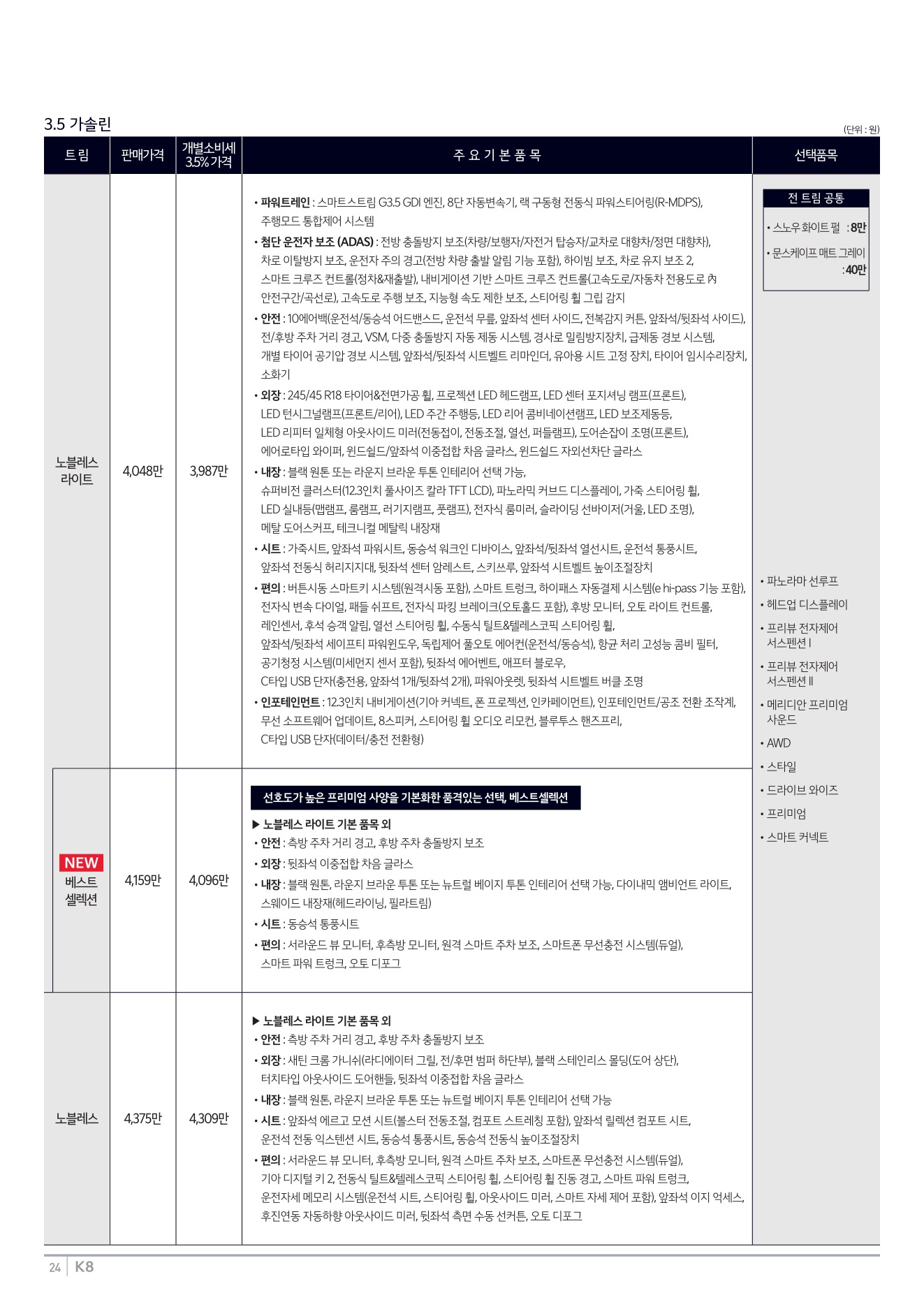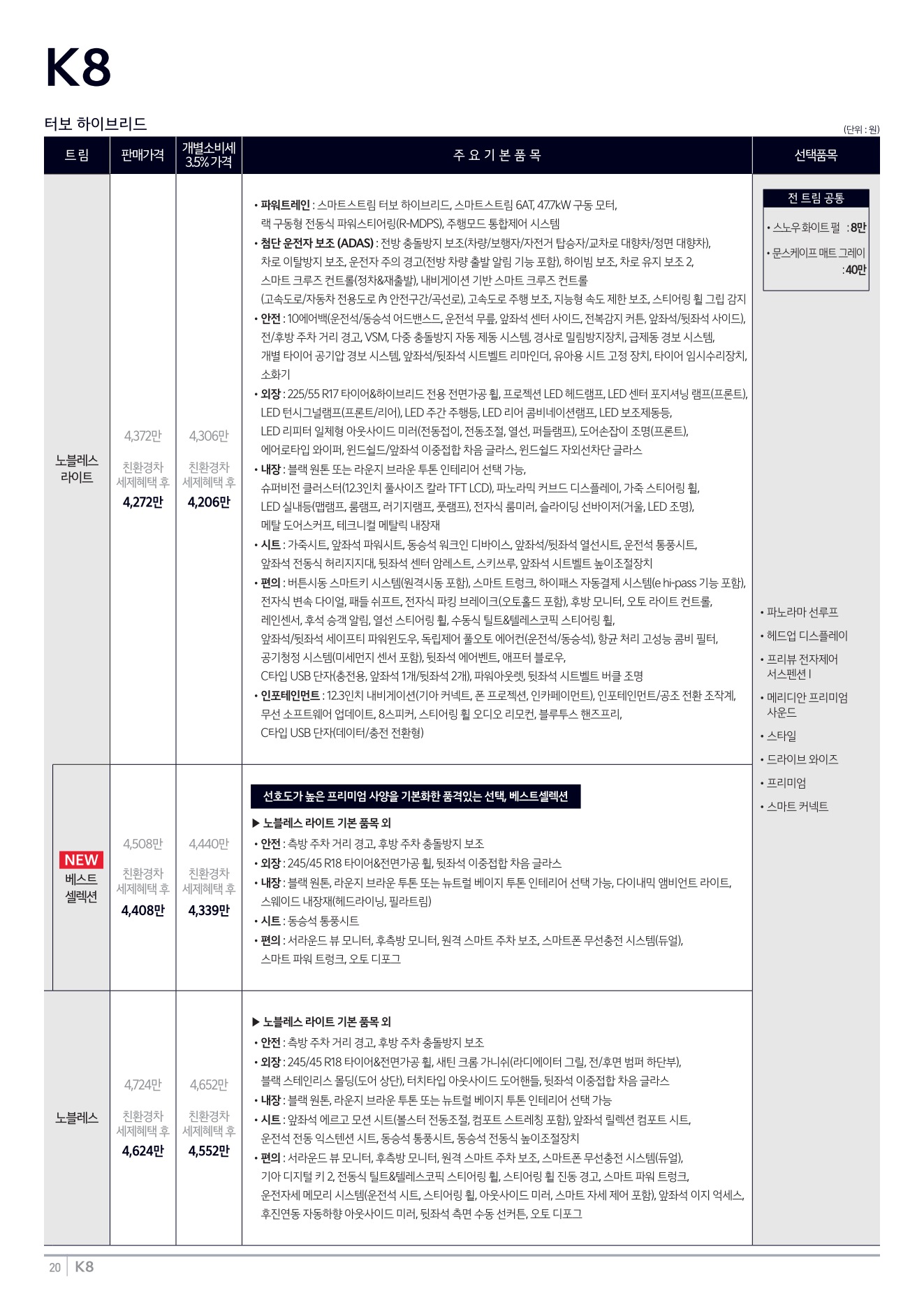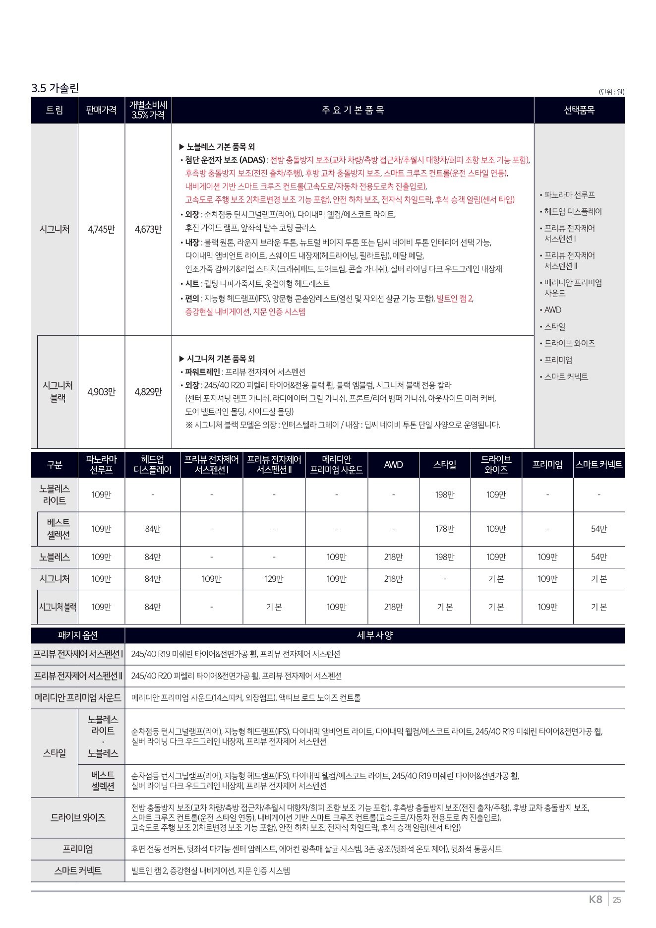 2025년 12월 K8 신차가격표