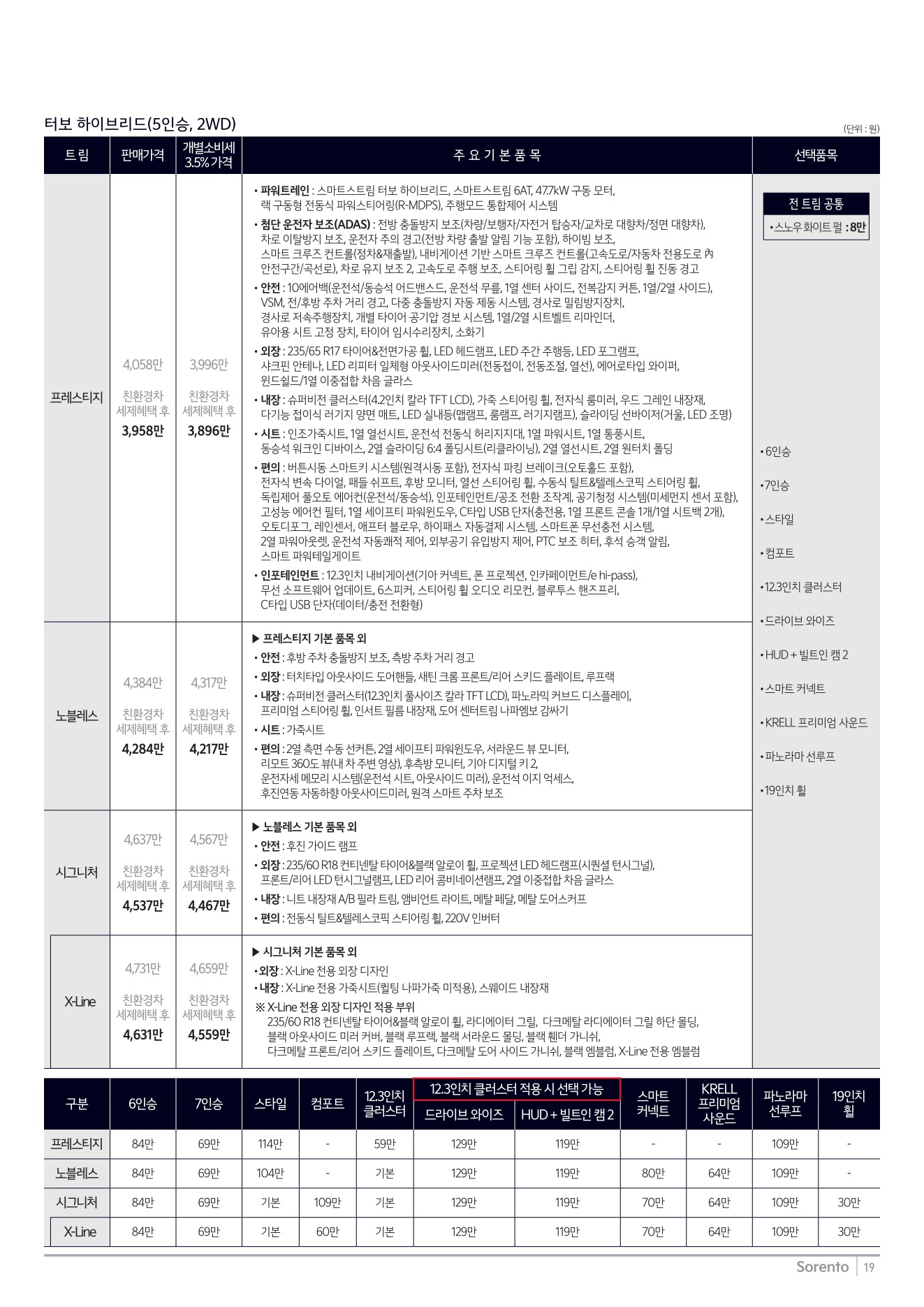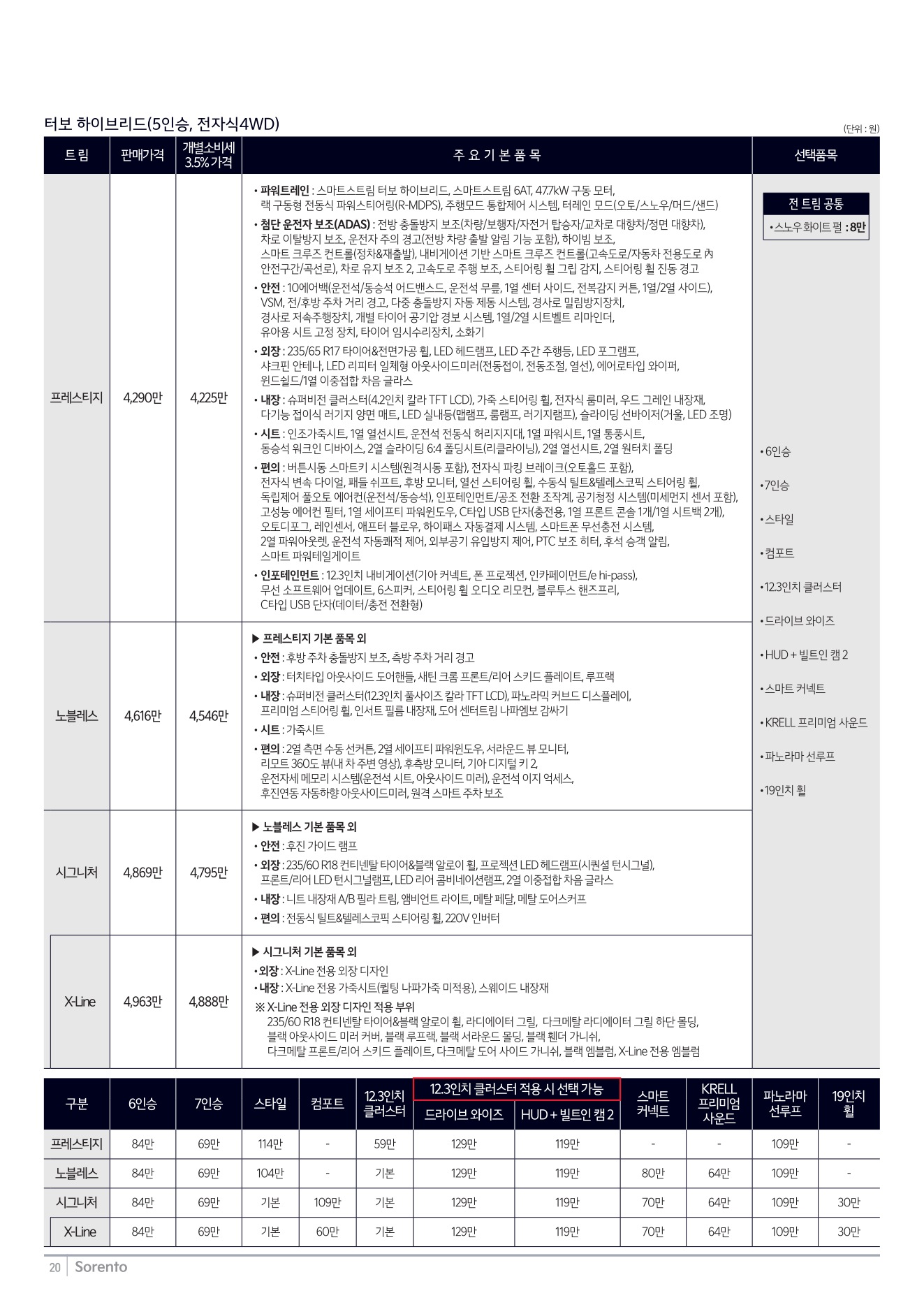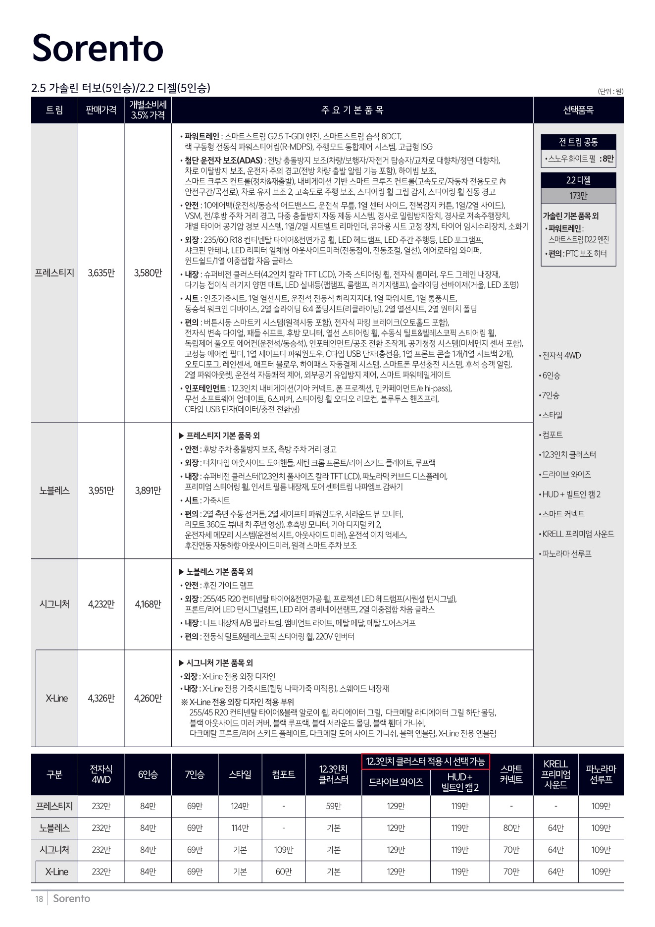 2025년 12월 쏘렌토 신차가격표