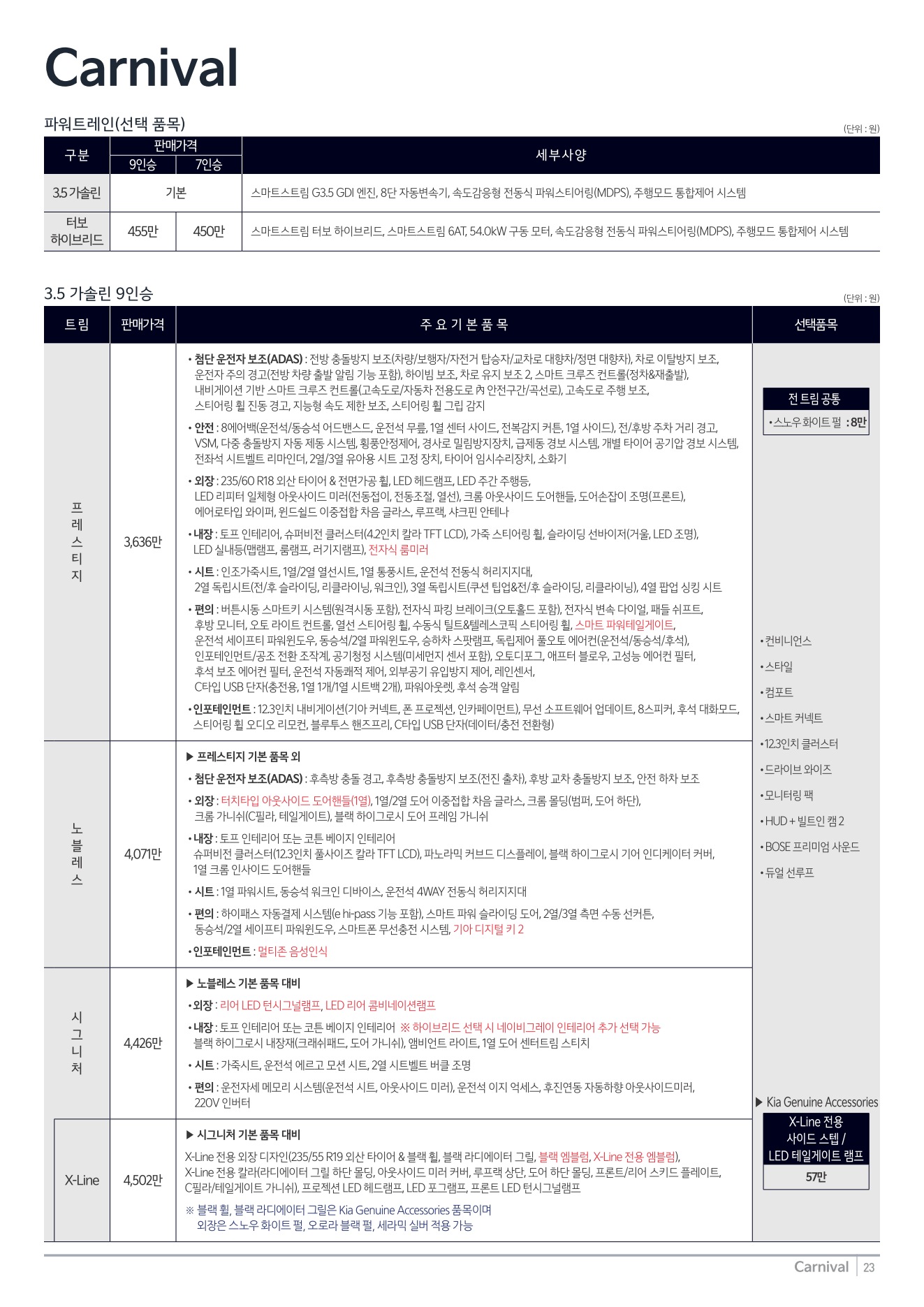 2025년 12월 카니발 신차가격표