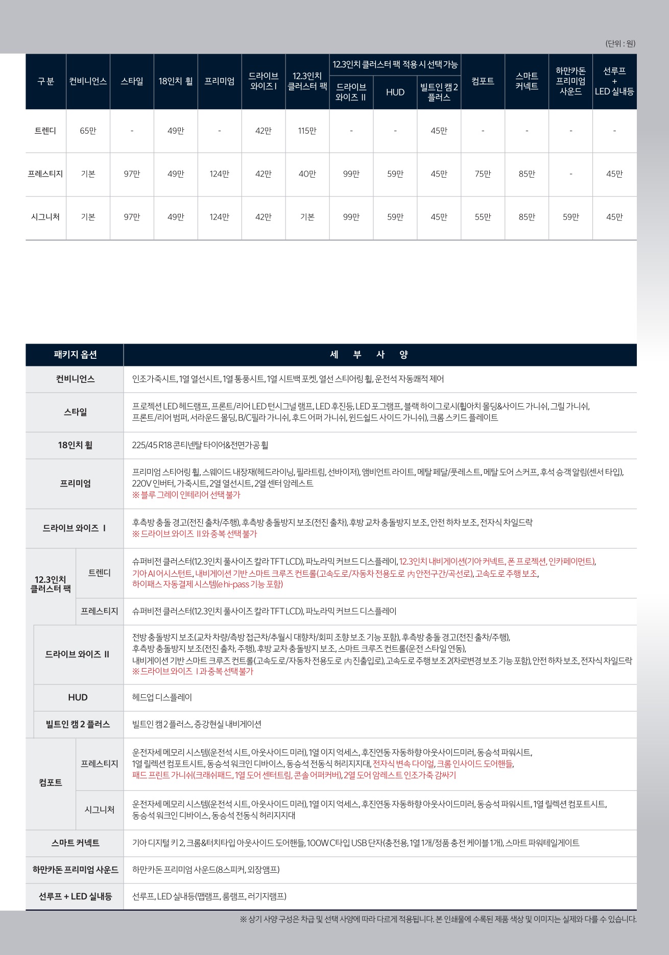 * 상기 가격표의 저작권은 해당제조사에 있습니다.