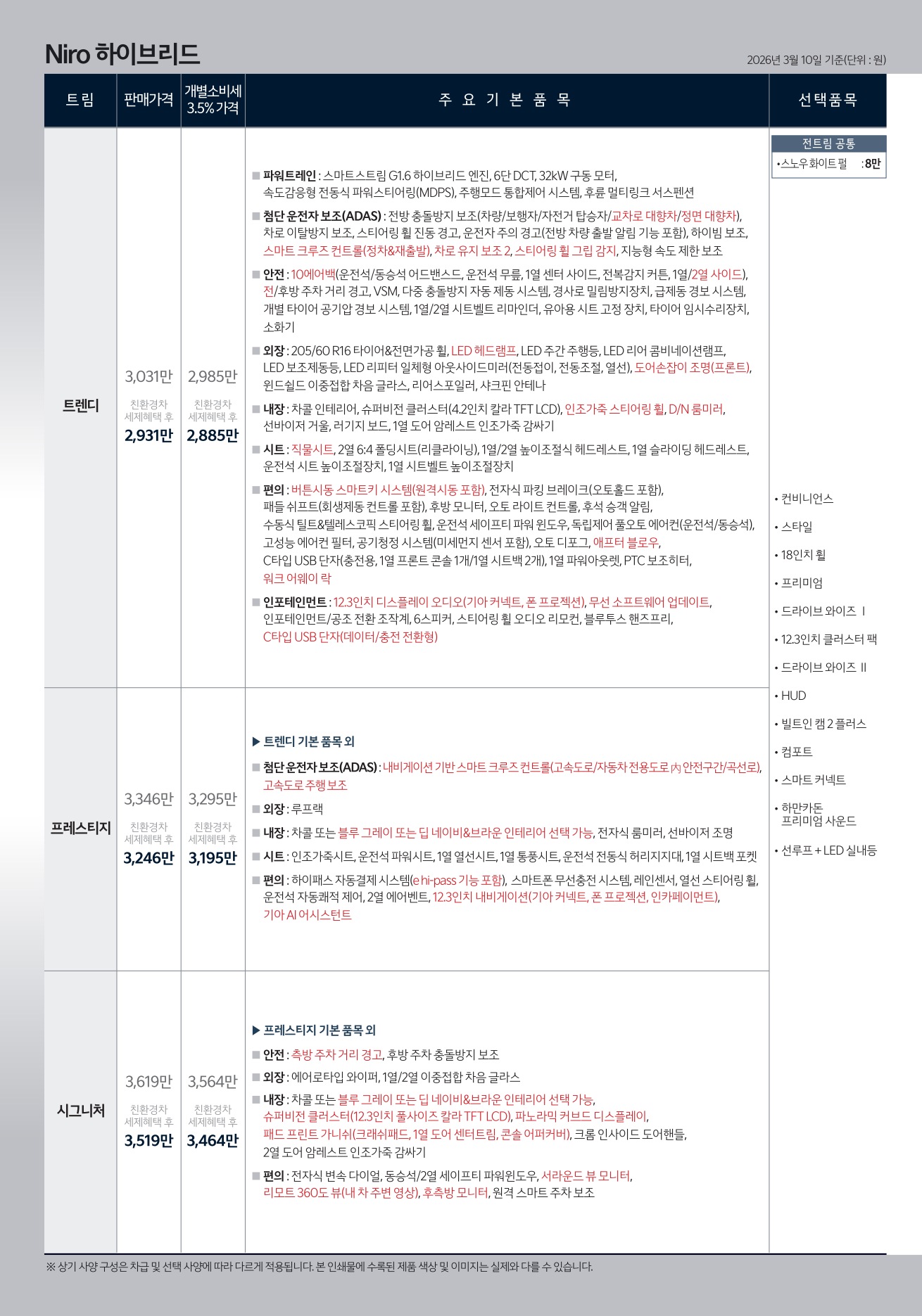 2026년 3월 니로 신차가격표 (더 뉴 니로 출시)