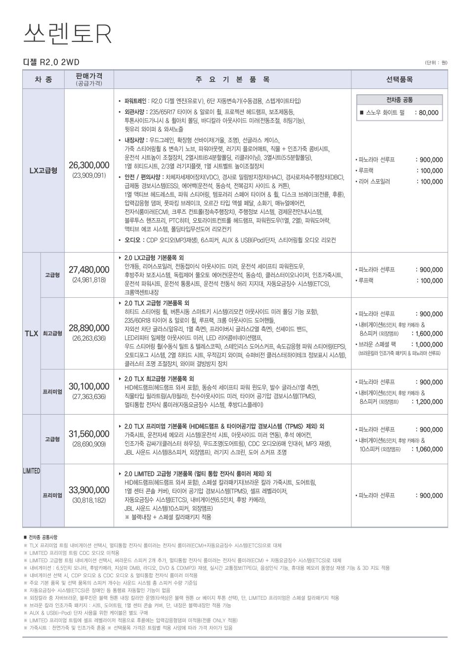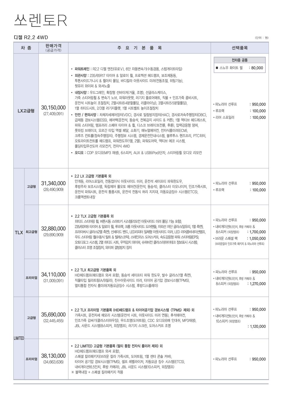 2012년 3월 쏘렌토R 신차가격표