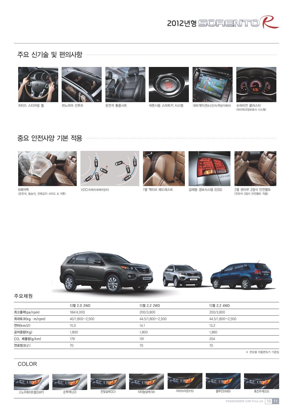 2011년 8월 쏘렌토R 신차가격표 (2012년형 출시)