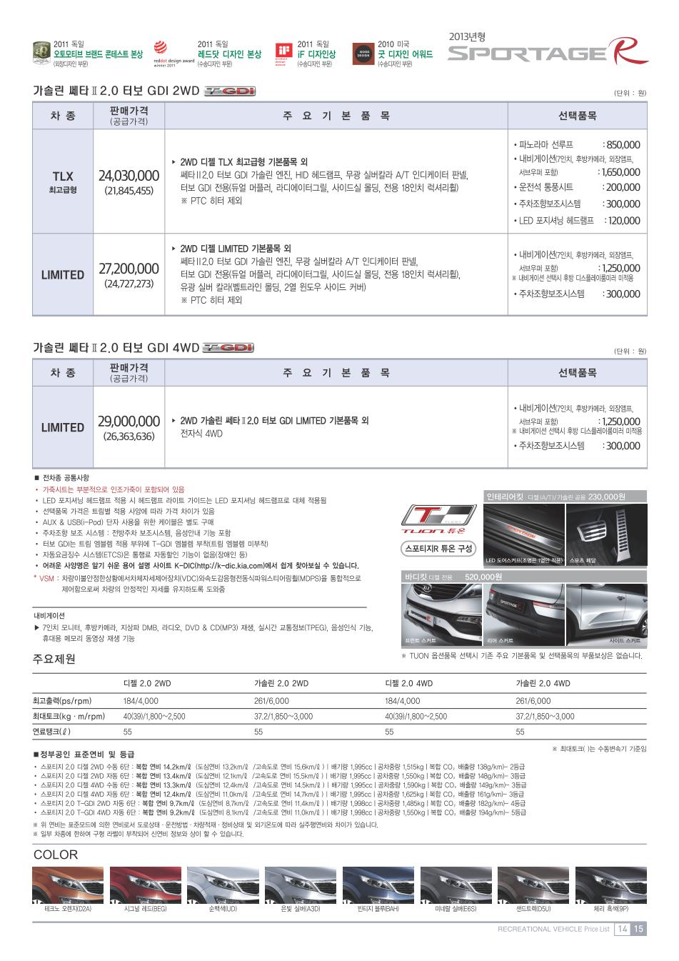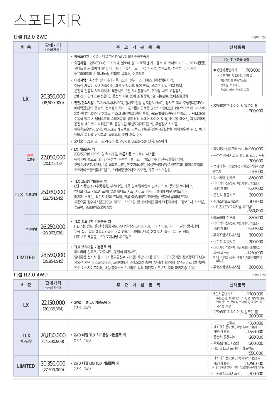 2013년 7월 스포티지R 신차가격표 (더뉴스포티지R)