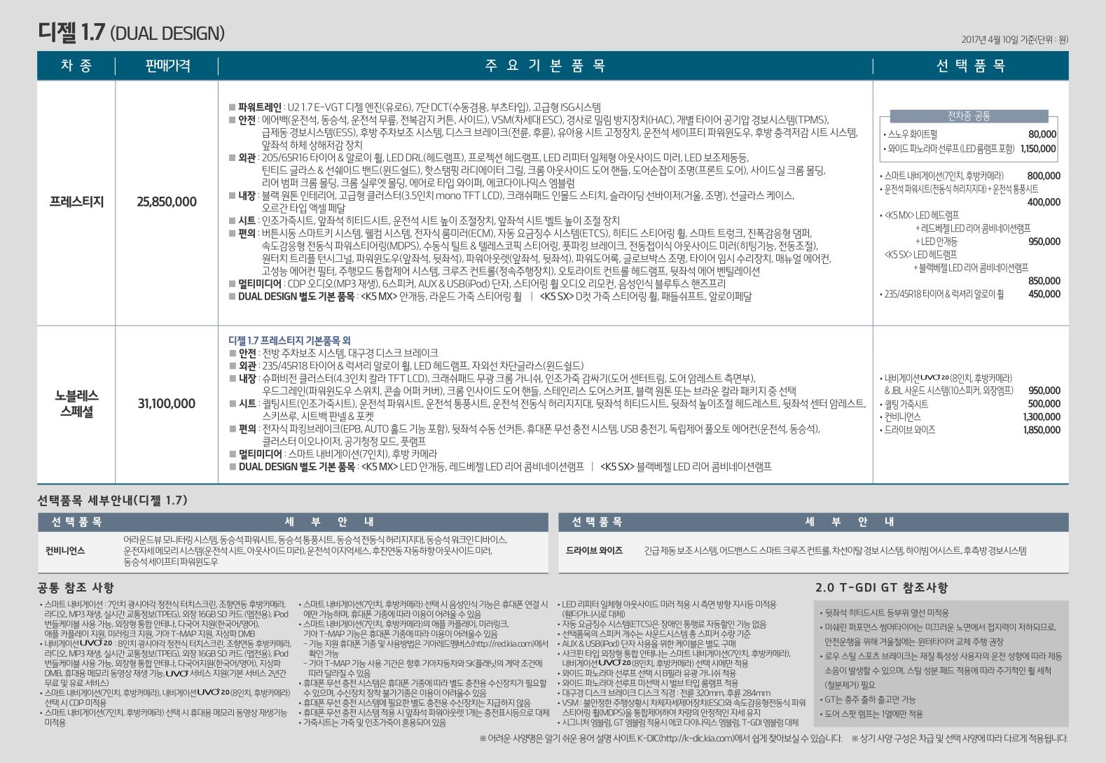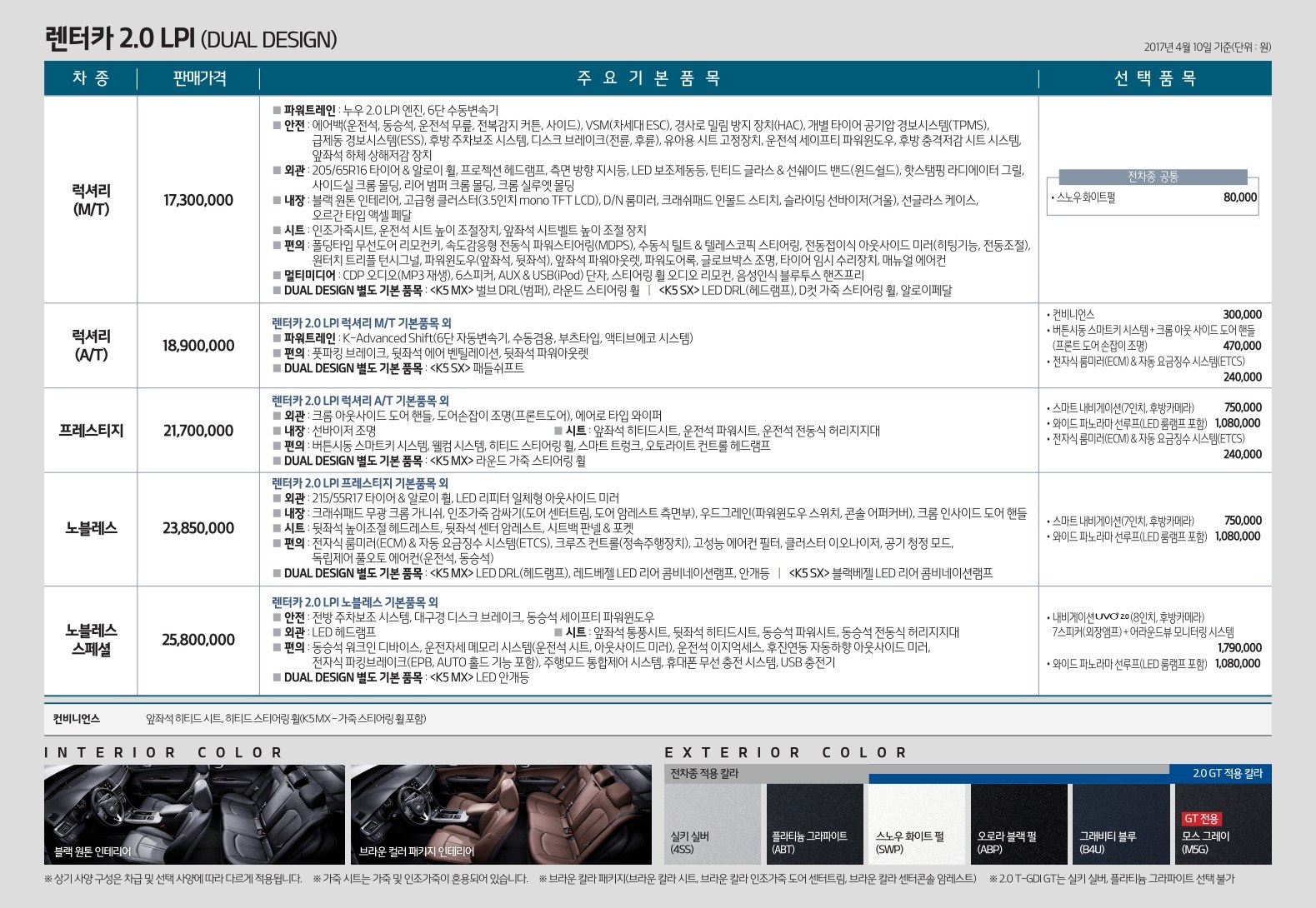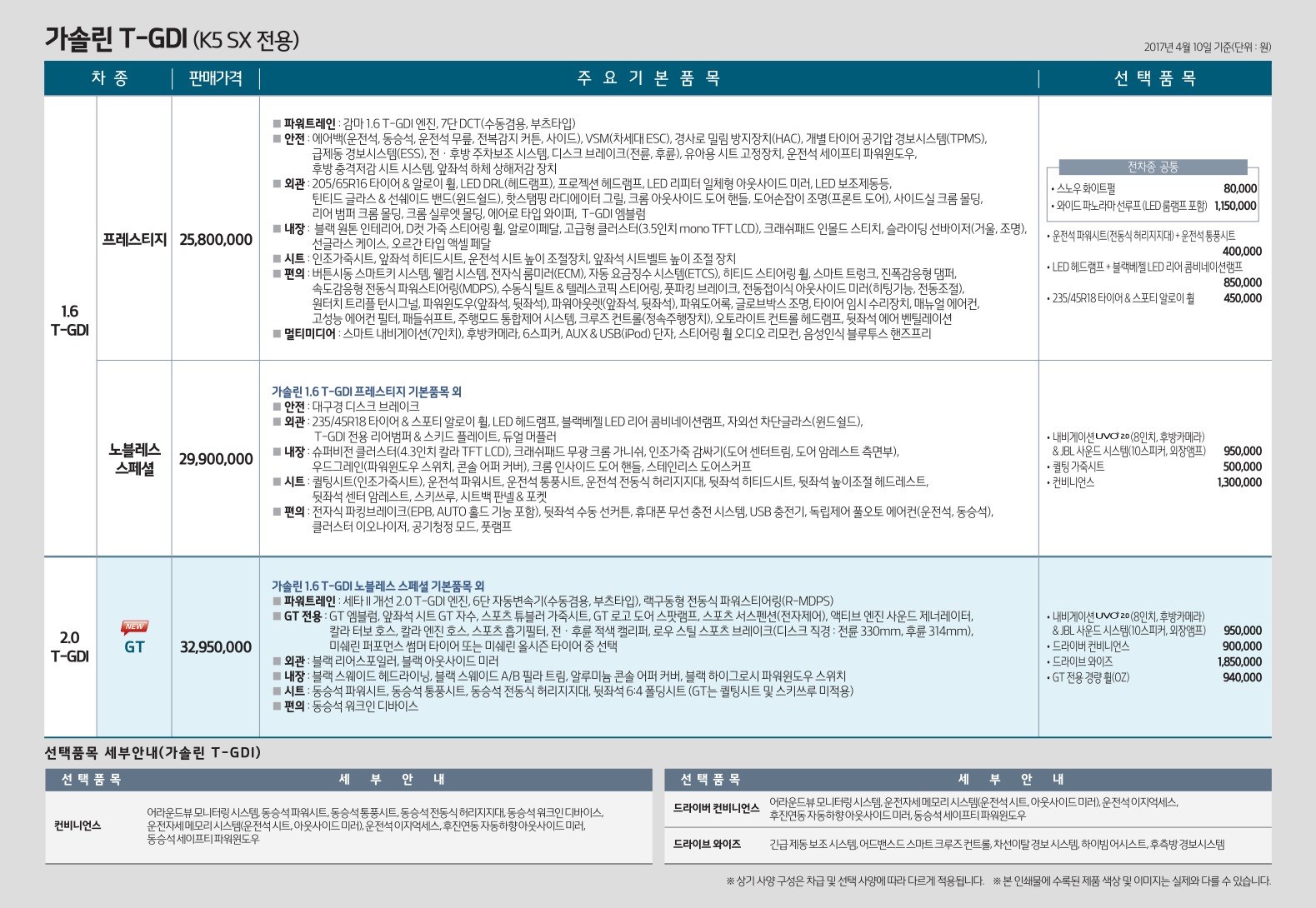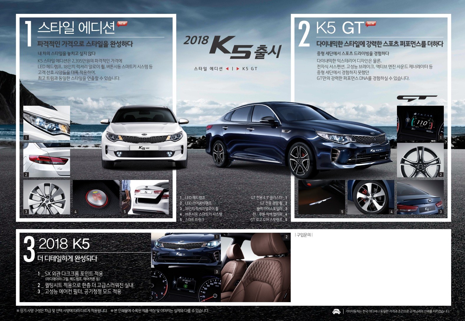 2017년 4월 K5 신차가격표 (2018년형 출시)