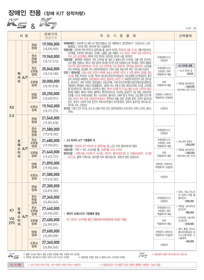 ※ 본 가격표의 모든 저작권은 해당 차량 제조사에 있습니다.