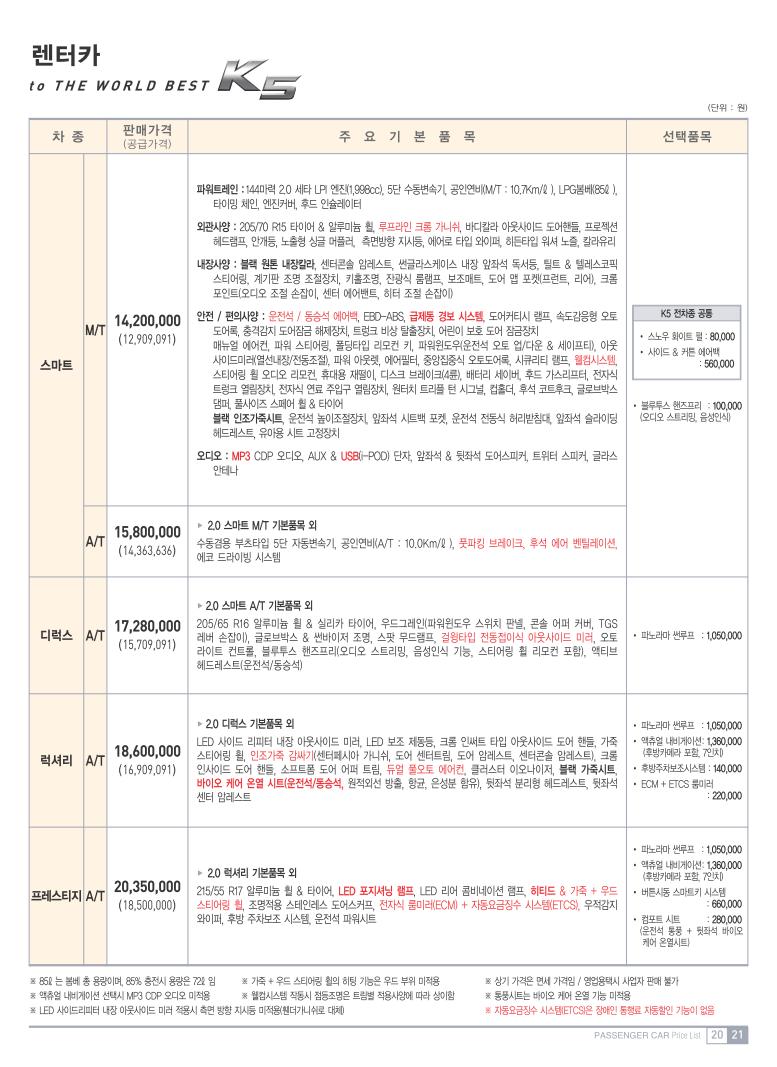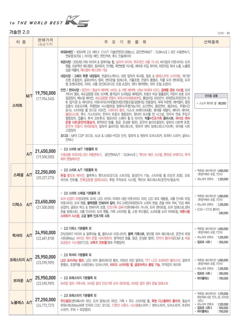 2010년 12월 K5 신차가격표