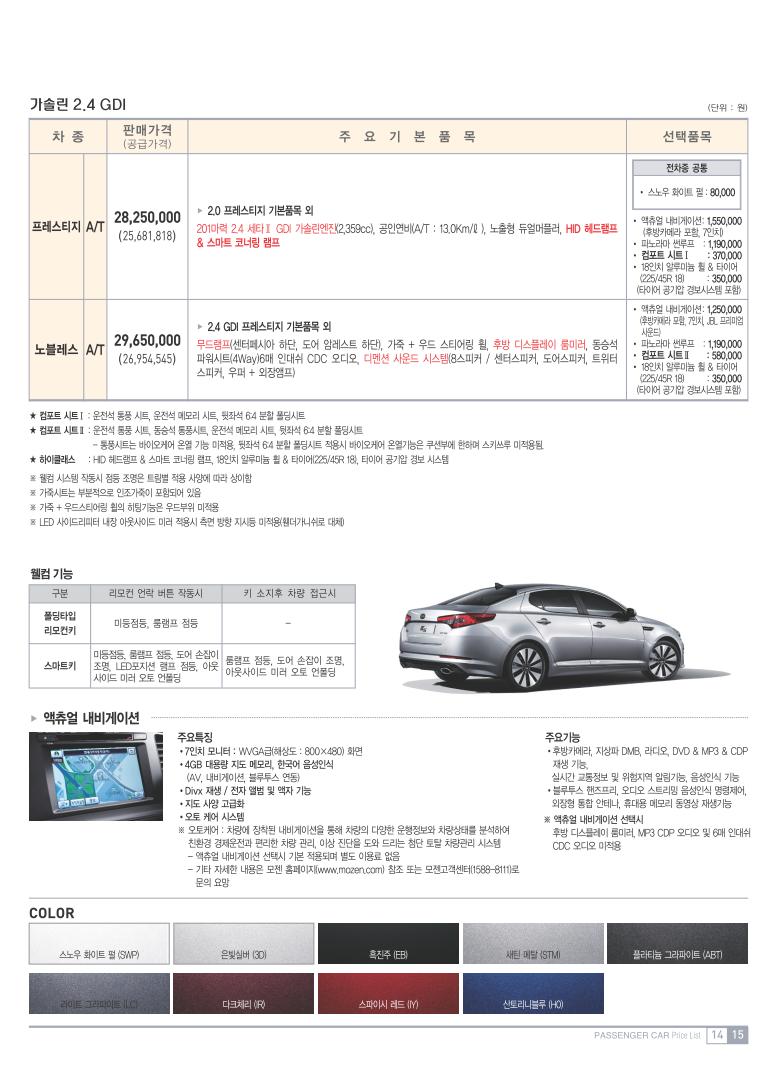 2011년 5월 K5 하이브리드 신차가격표