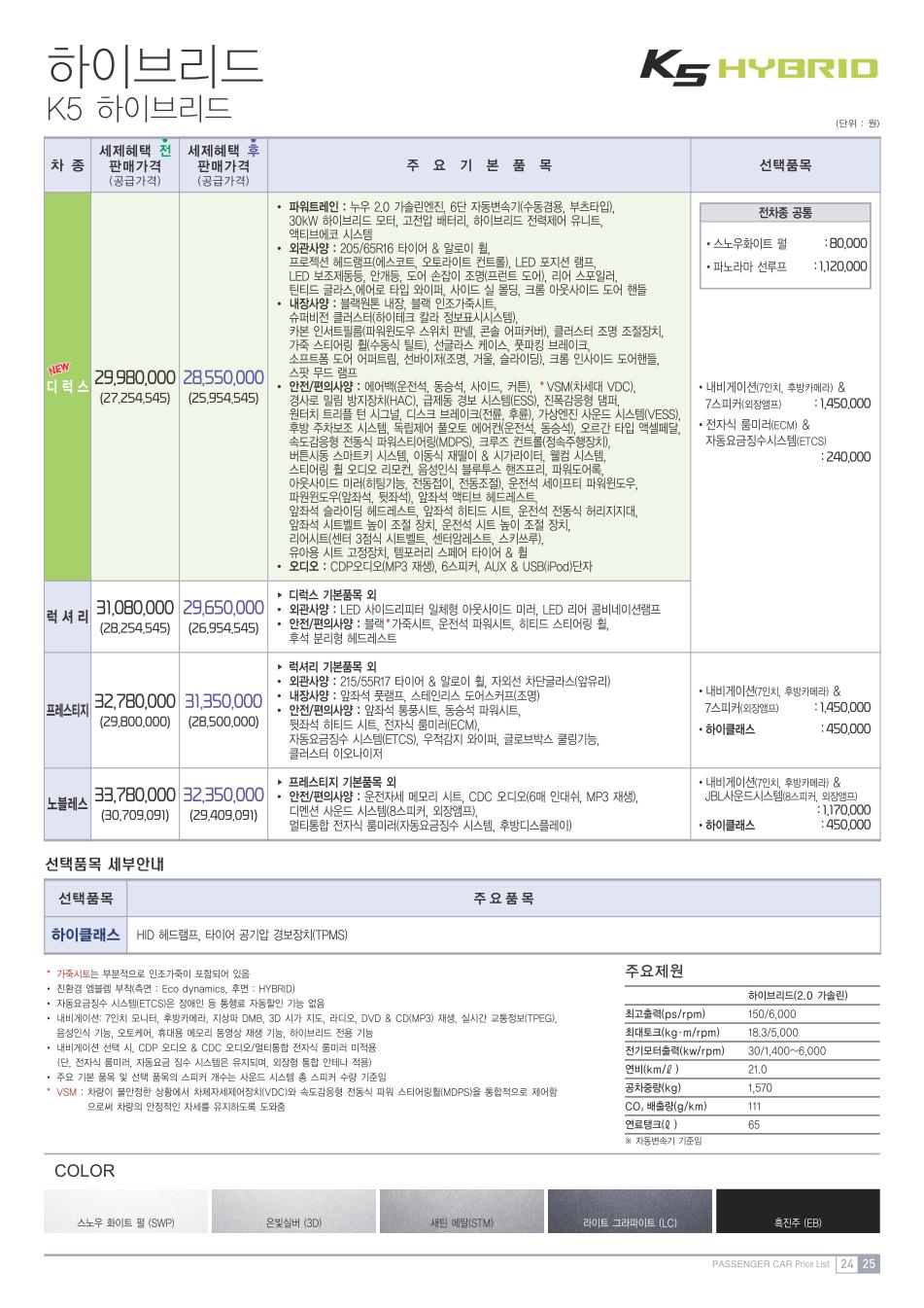 2012년 2월 K5 신차가격표 (가솔린 누우 CVVL 엔진 적용)