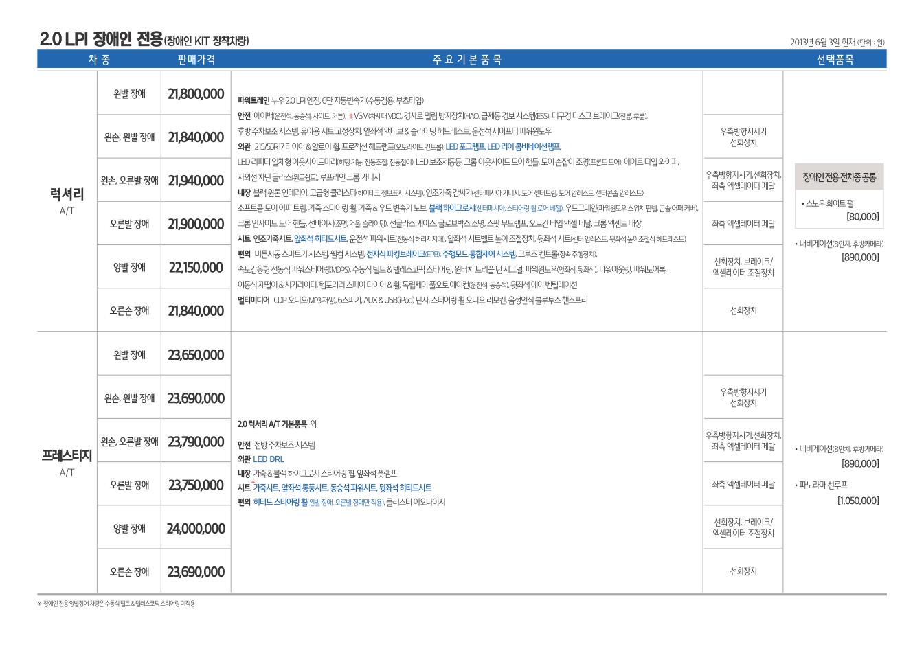 ※ 본 가격표의 모든 저작권은 해당 차량 제조사에 있습니다.