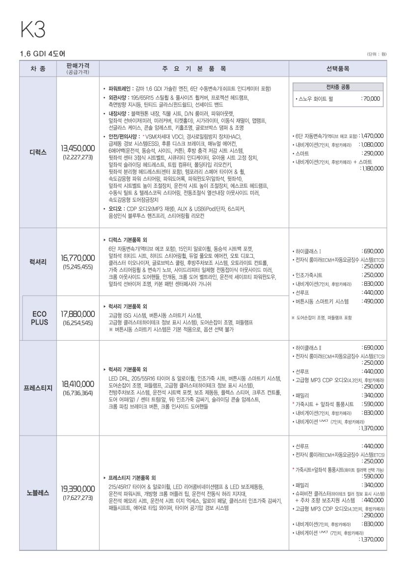 ※ 본 가격표의 모든 저작권은 해당 차량 제조사에 있습니다.