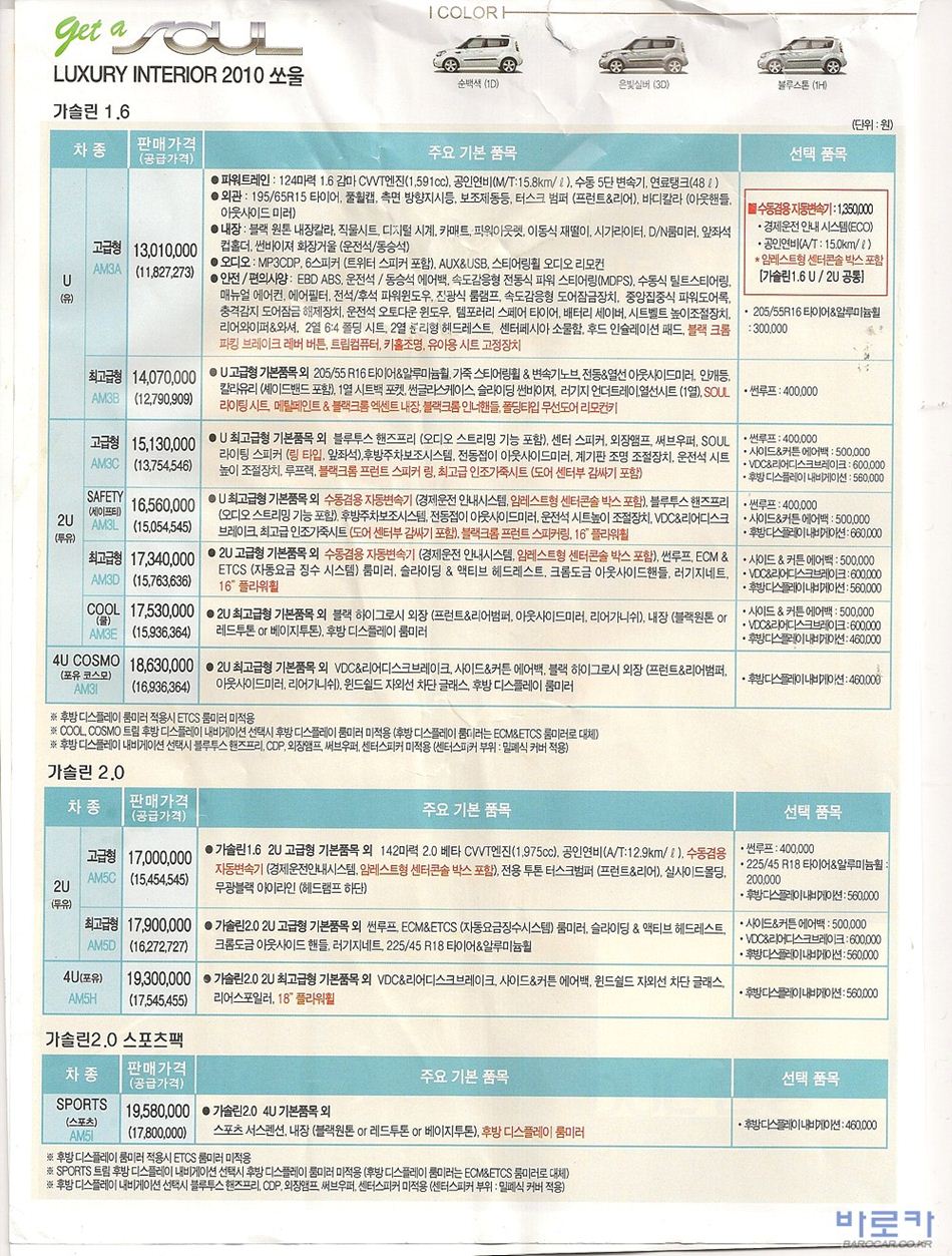 2010년 12월 쏘울 신차가격표