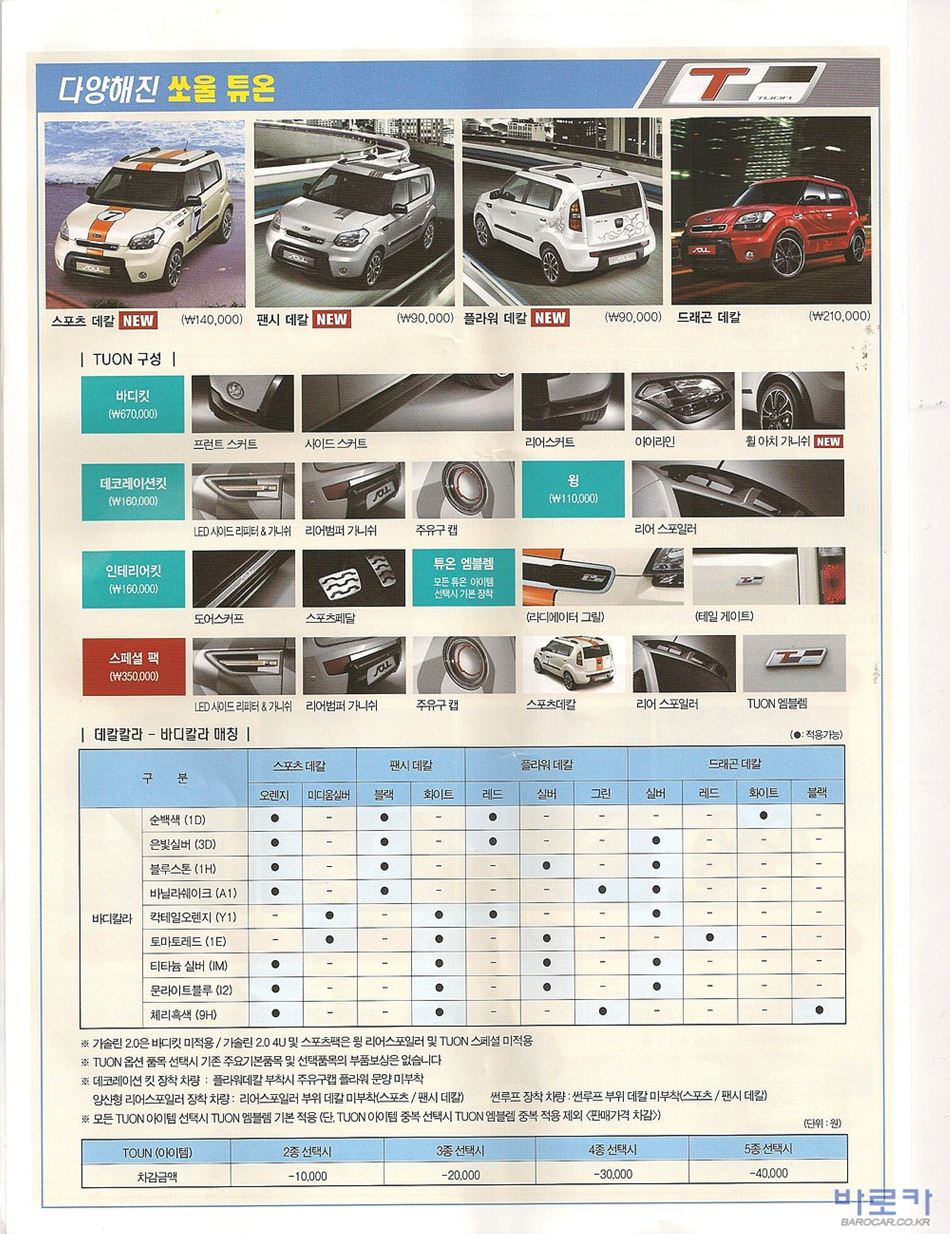 2009년 10월 쏘울 신차가격표