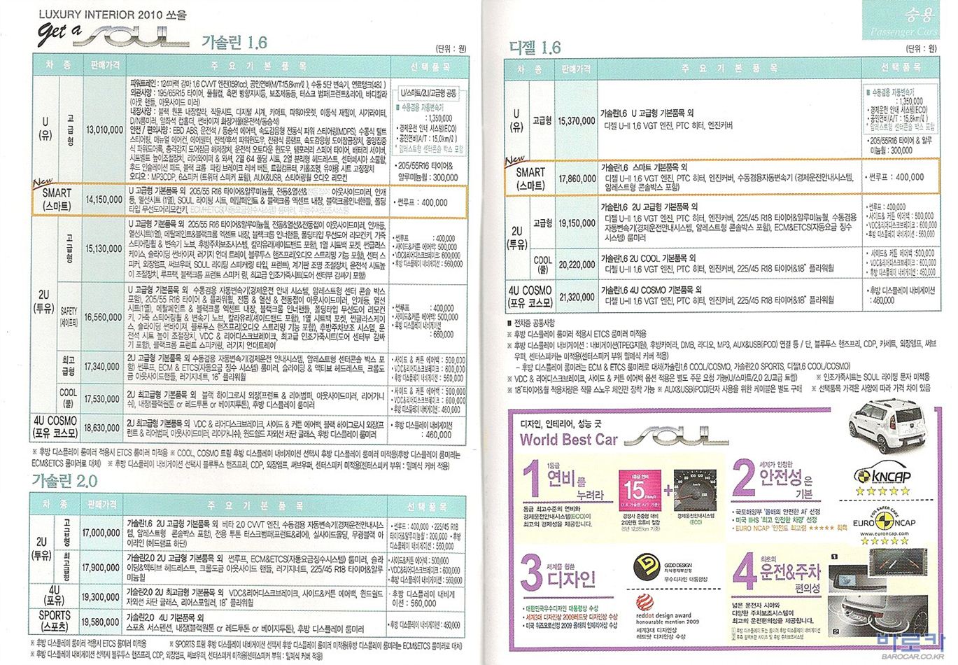 2009년 10월 쏘울 신차가격표
