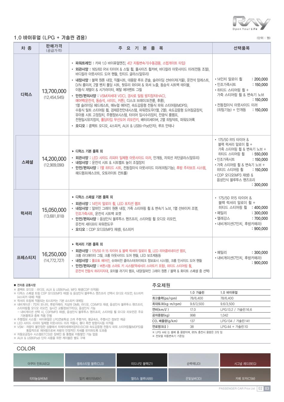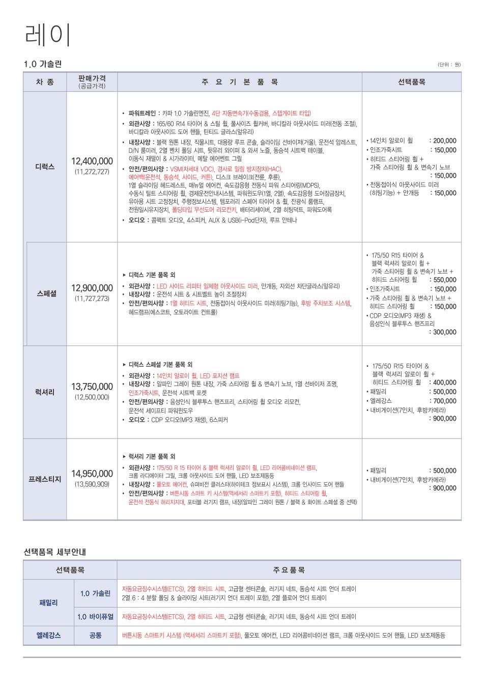 ※ 본 가격표의 모든 저작권은 해당 차량 제조사에 있습니다.