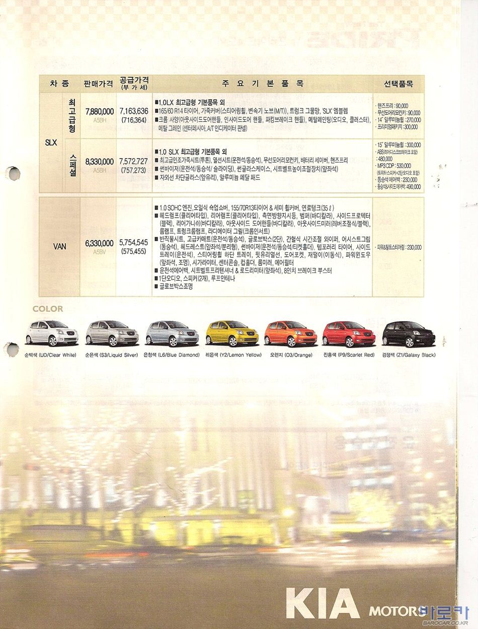 2006년 1월 모닝 신차가격표