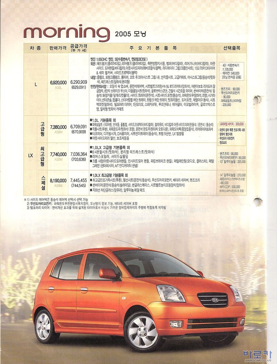 2005년 11월 모닝 신차가격표