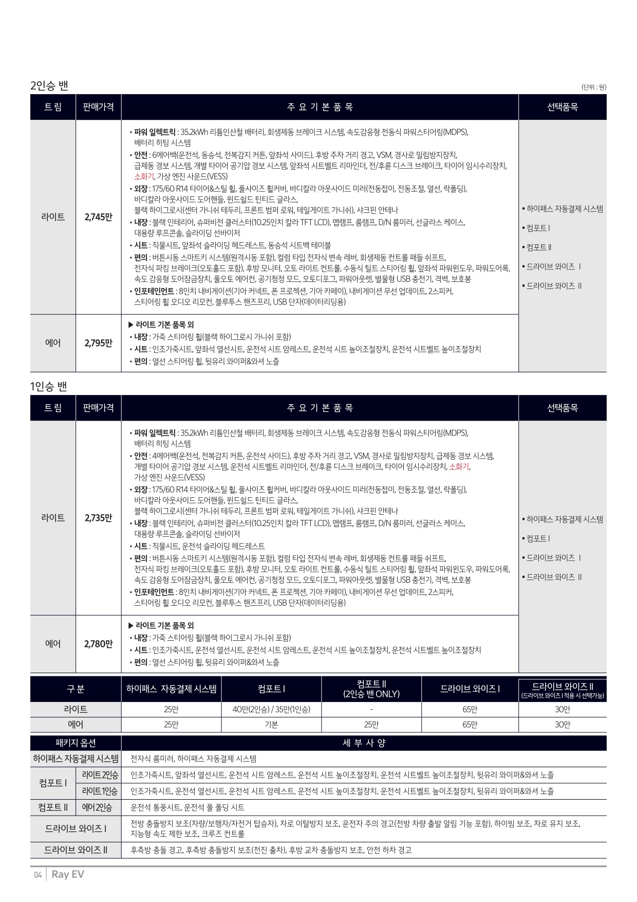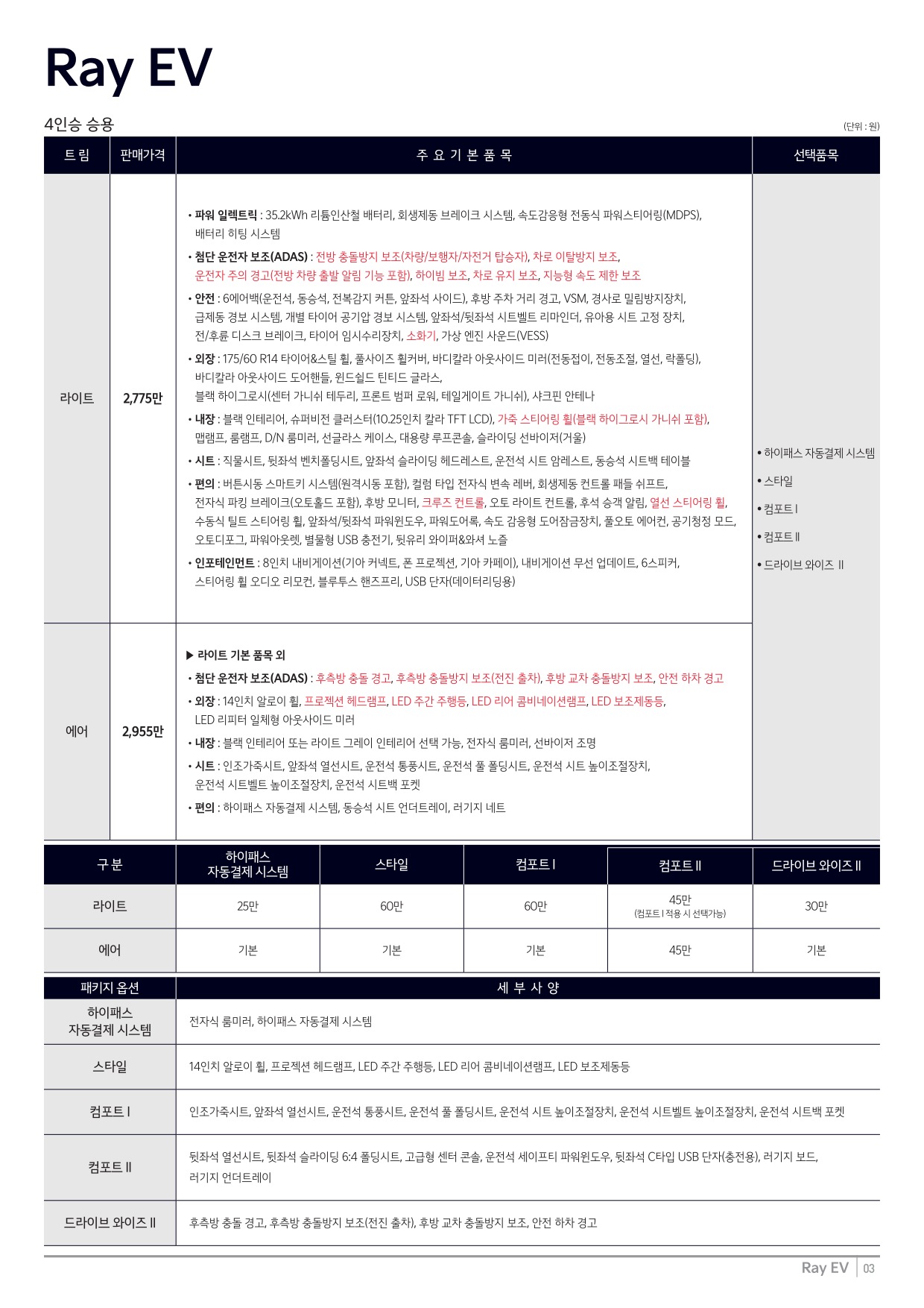레이 EV 신차가격표 (2025년형 레이EV 출시)