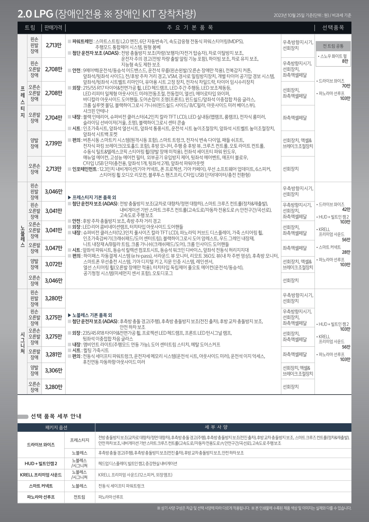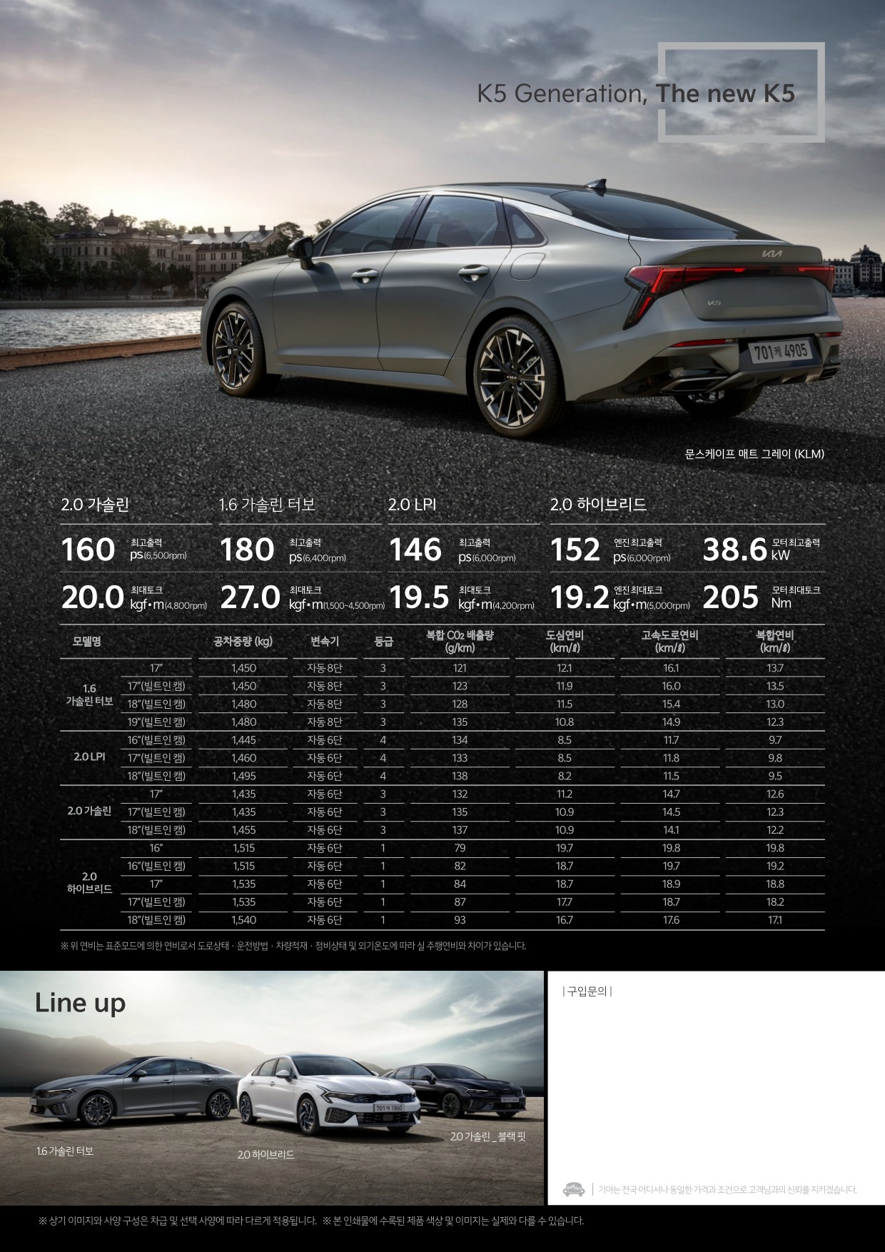 2023년 10월 더뉴 K5 신차가격표 (3세대 K5 페이스리프트 사전계약용)