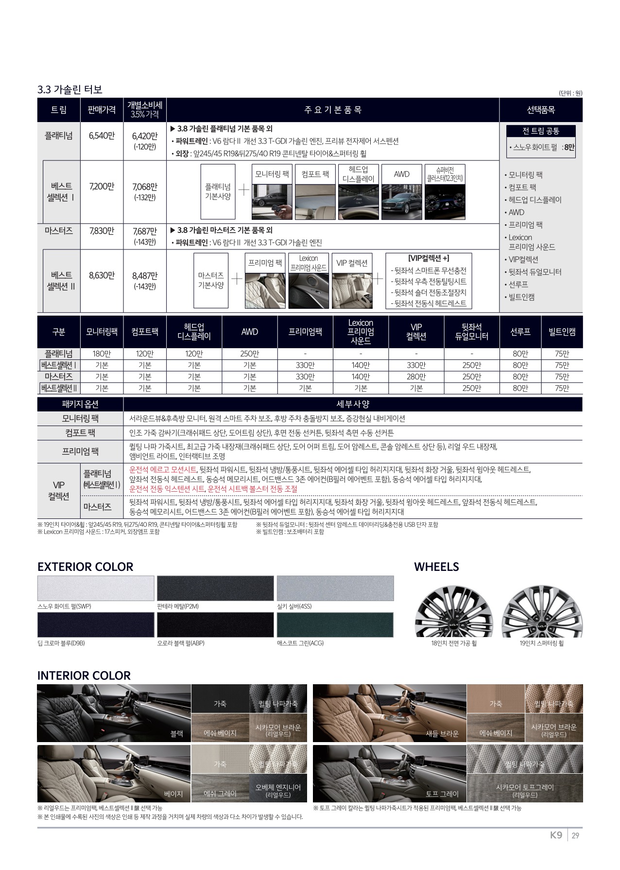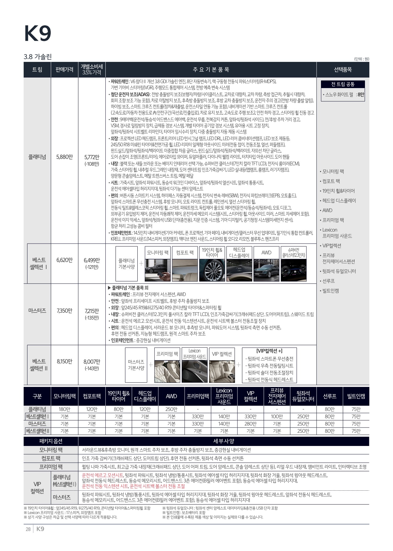 2022년 10월 K9 신차가격표 (2023년형 K9 출시)