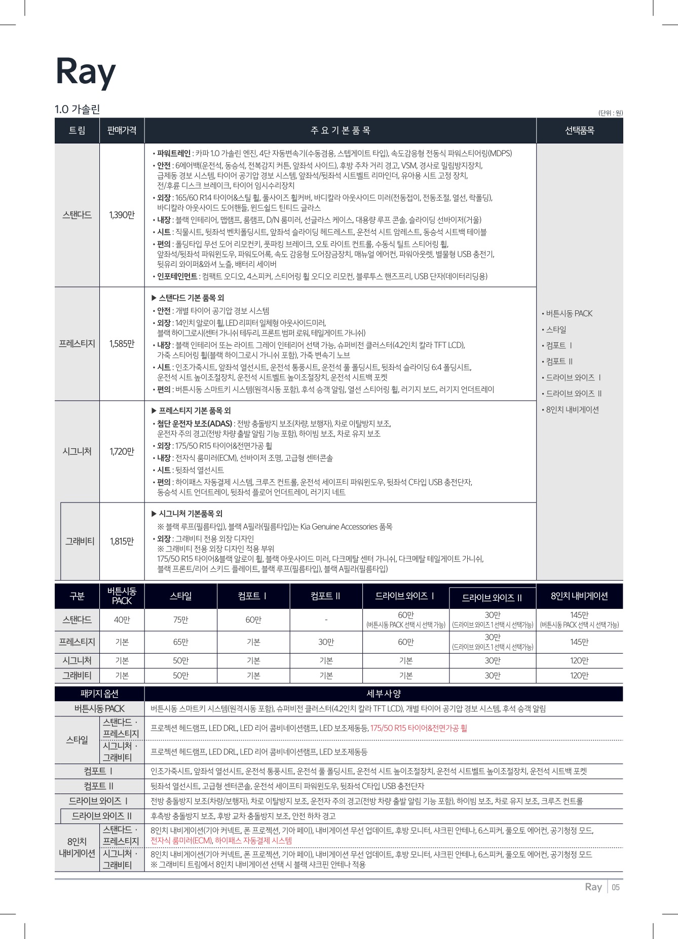 2022년 9월 레이 신차가격표 (더 뉴 기아 레이 출시)