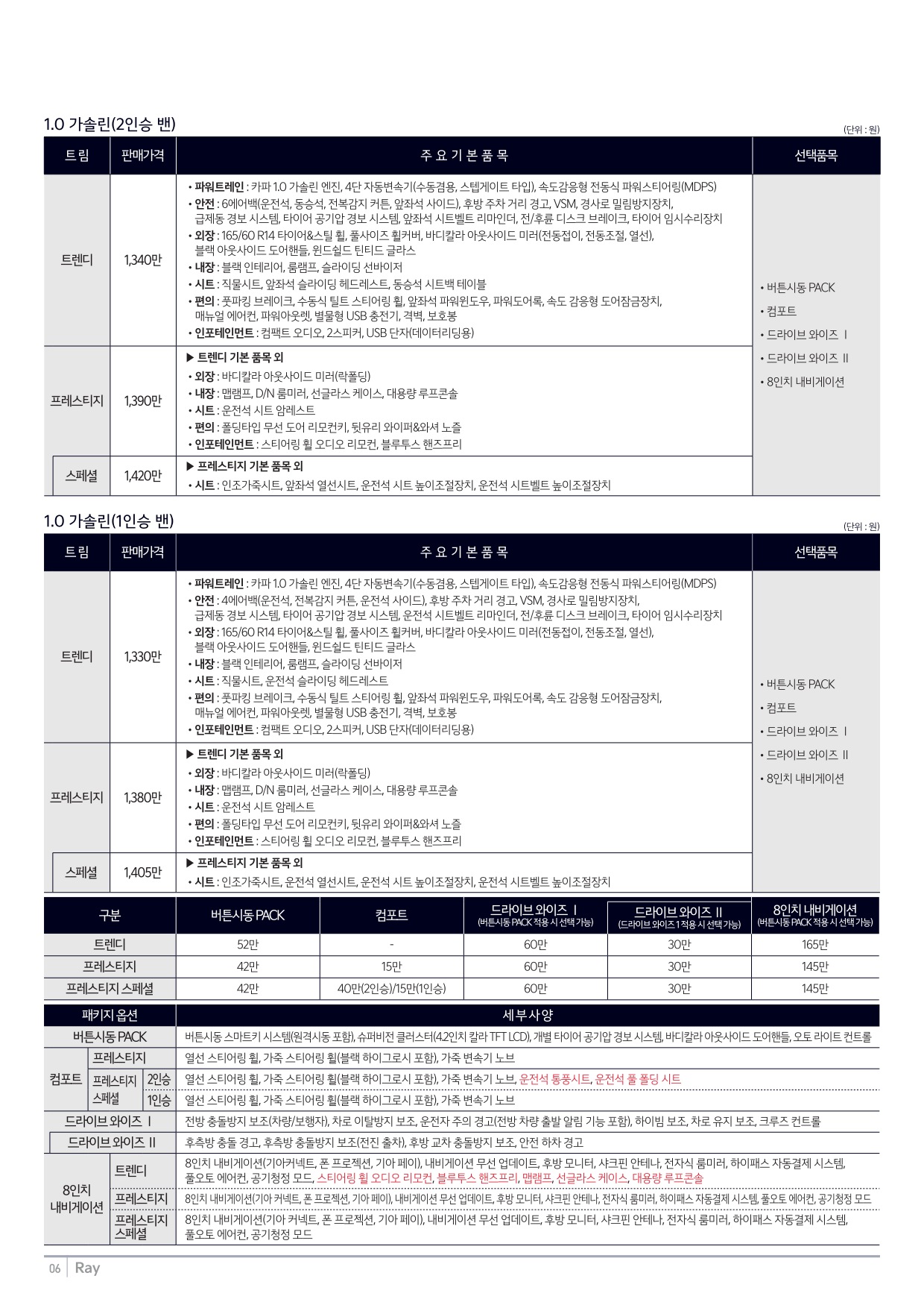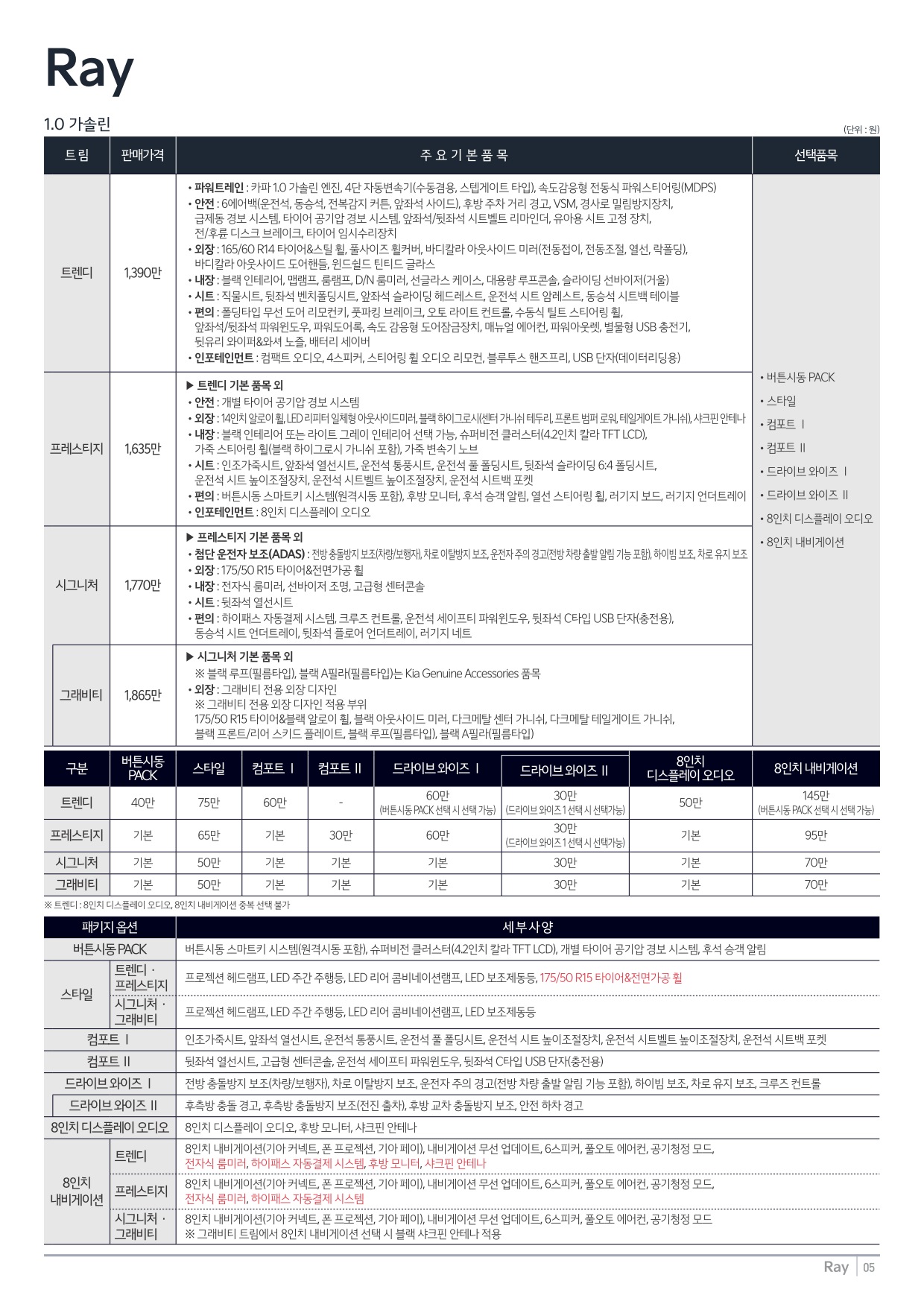 2024년 10월 레이 신차가격표 (2025년형 레이 출시)