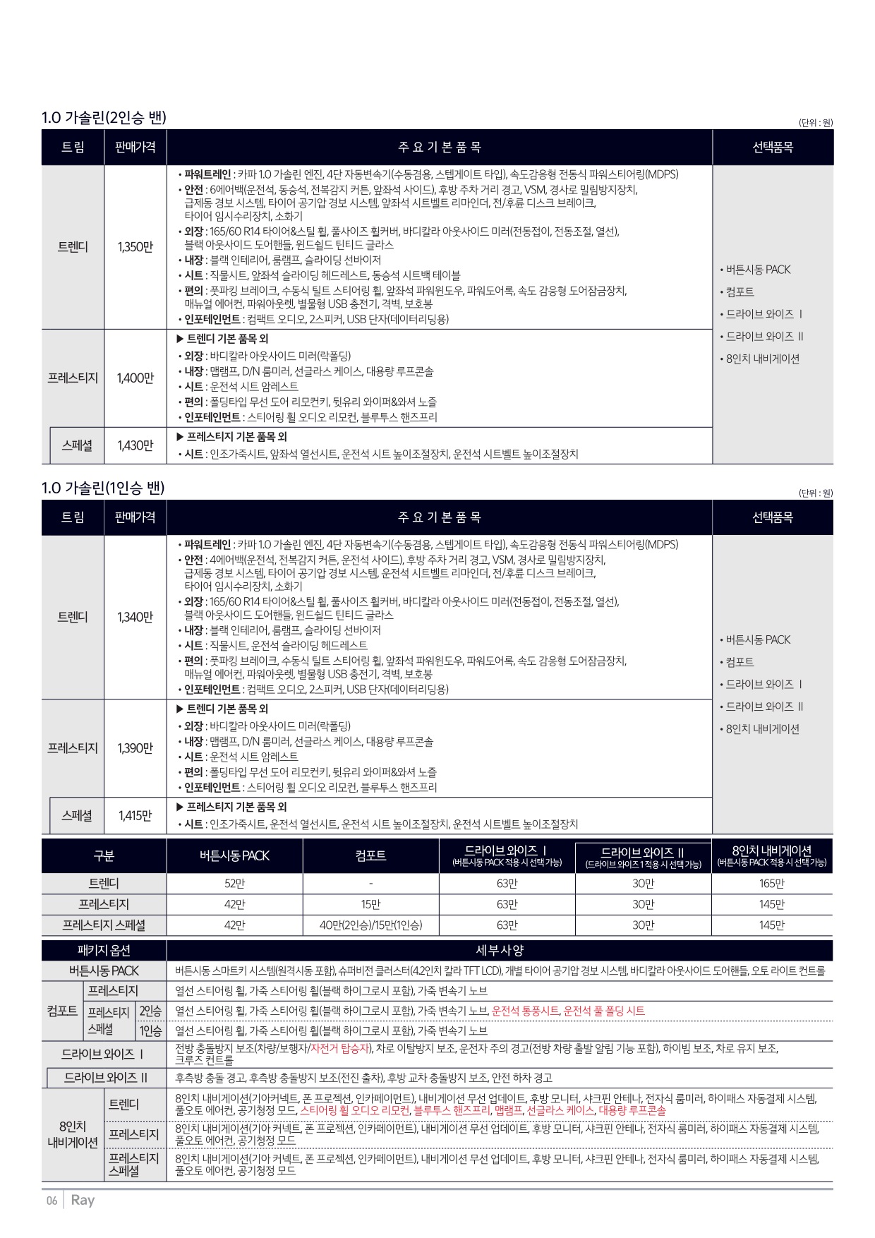 2025년 9월 레이 신차가격표 (2026년형 레이 출시)