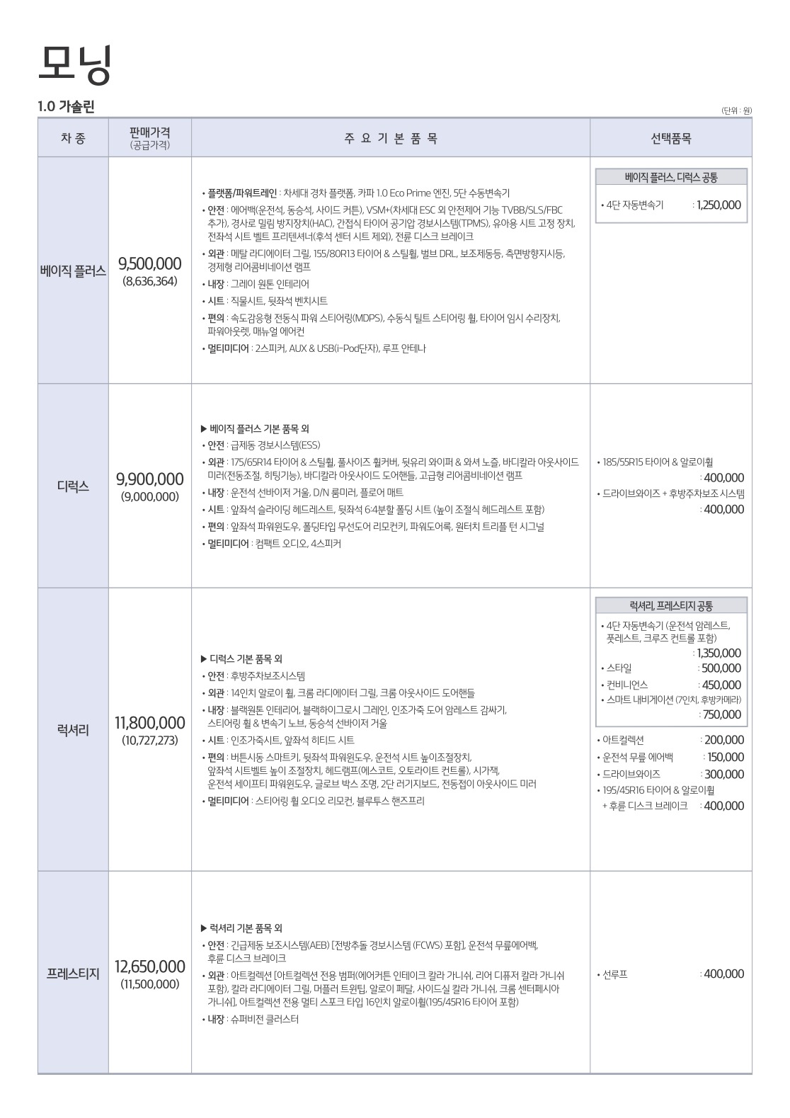 ※ 본 가격표의 모든 저작권은 해당 차량 제조사에 있습니다.
