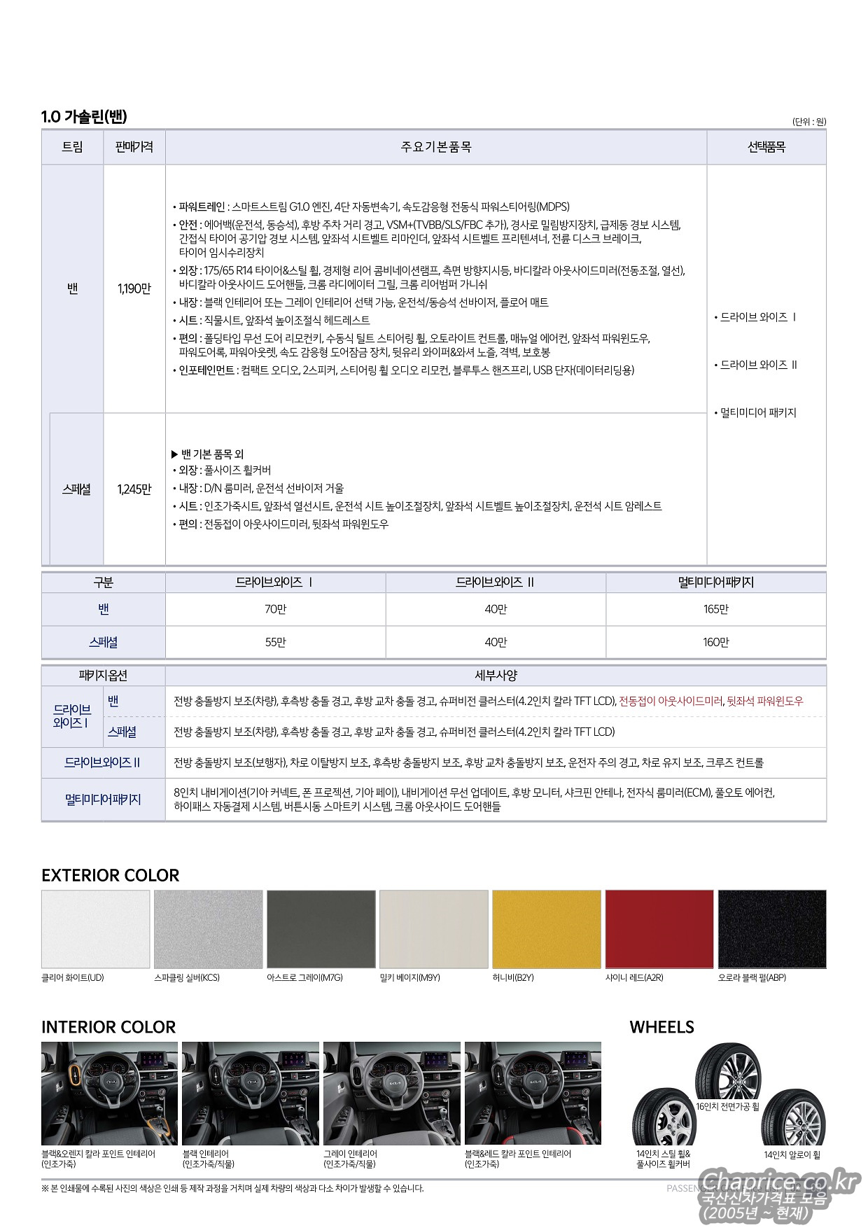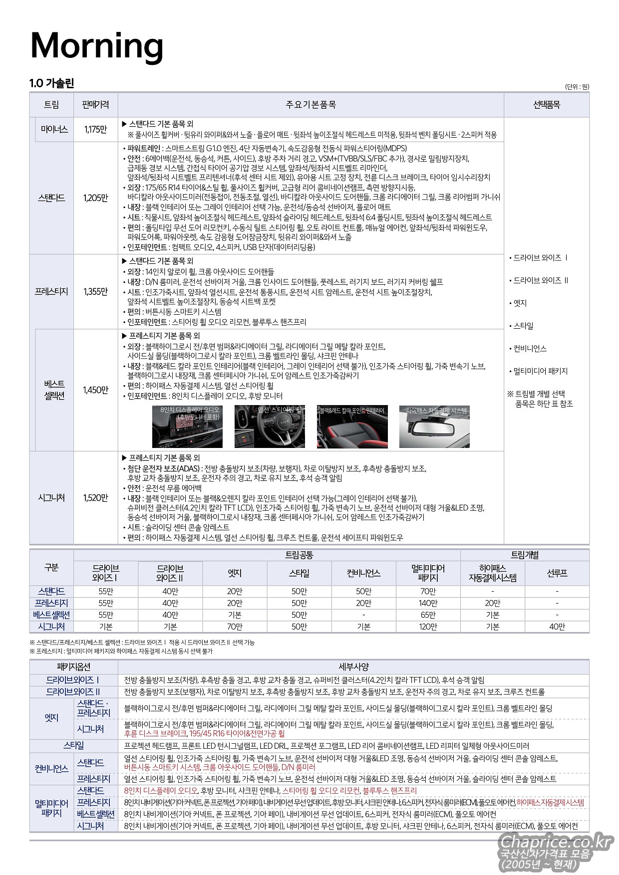 2022년 6월 모닝 신차가격표 (2023년형 모닝)